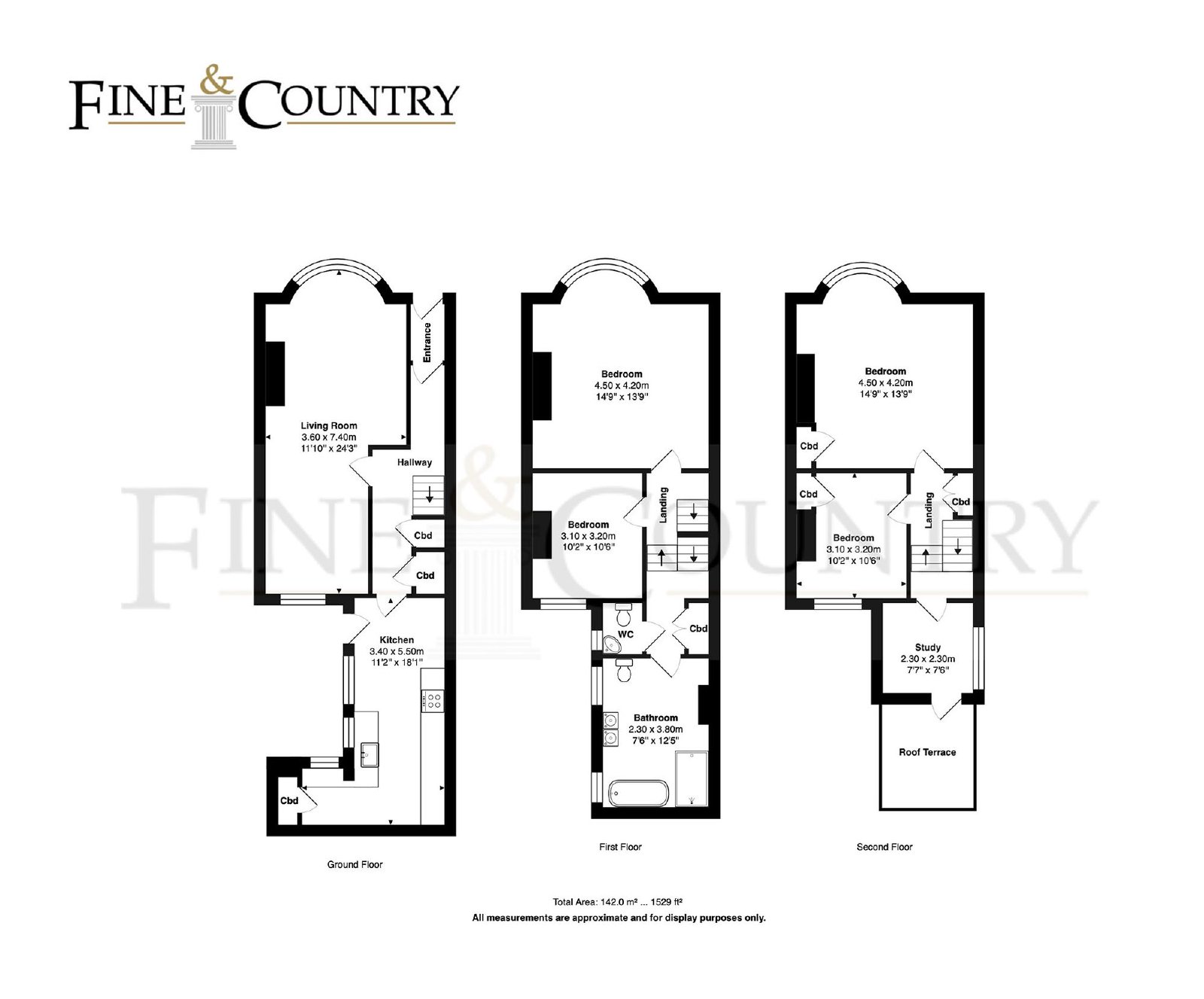On the three quarter landing, a further room offers versatile use as office space and or guest bedroom and leads directly onto the sunny roof terrace.