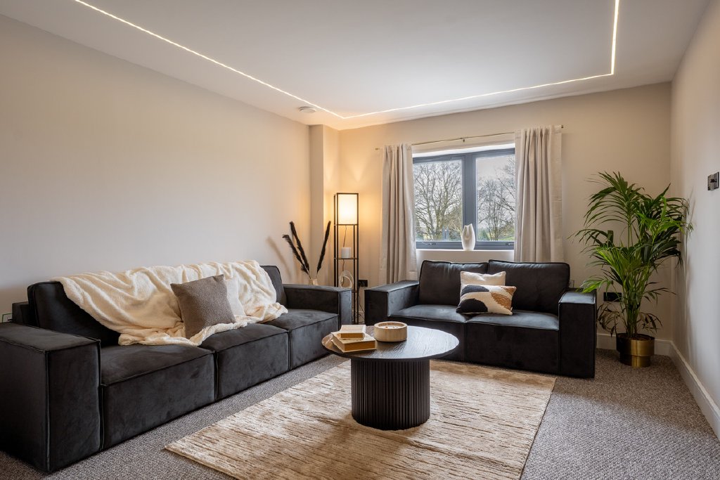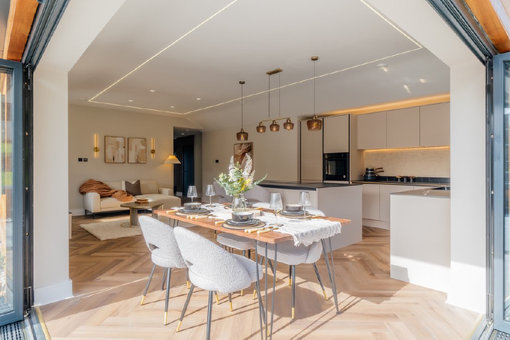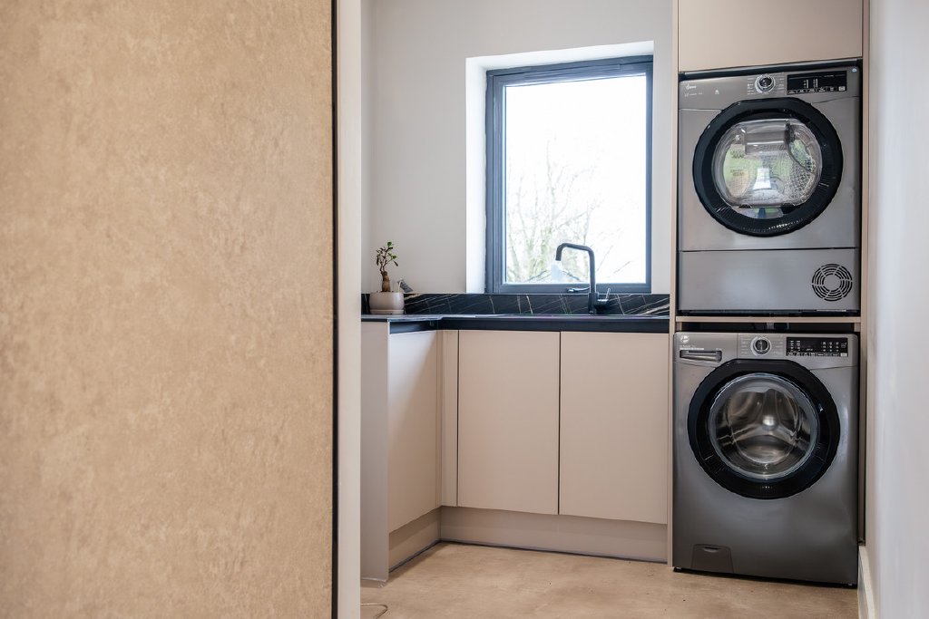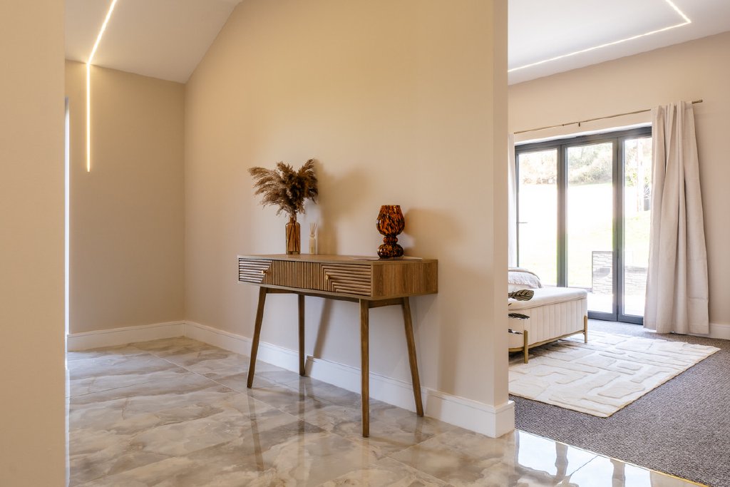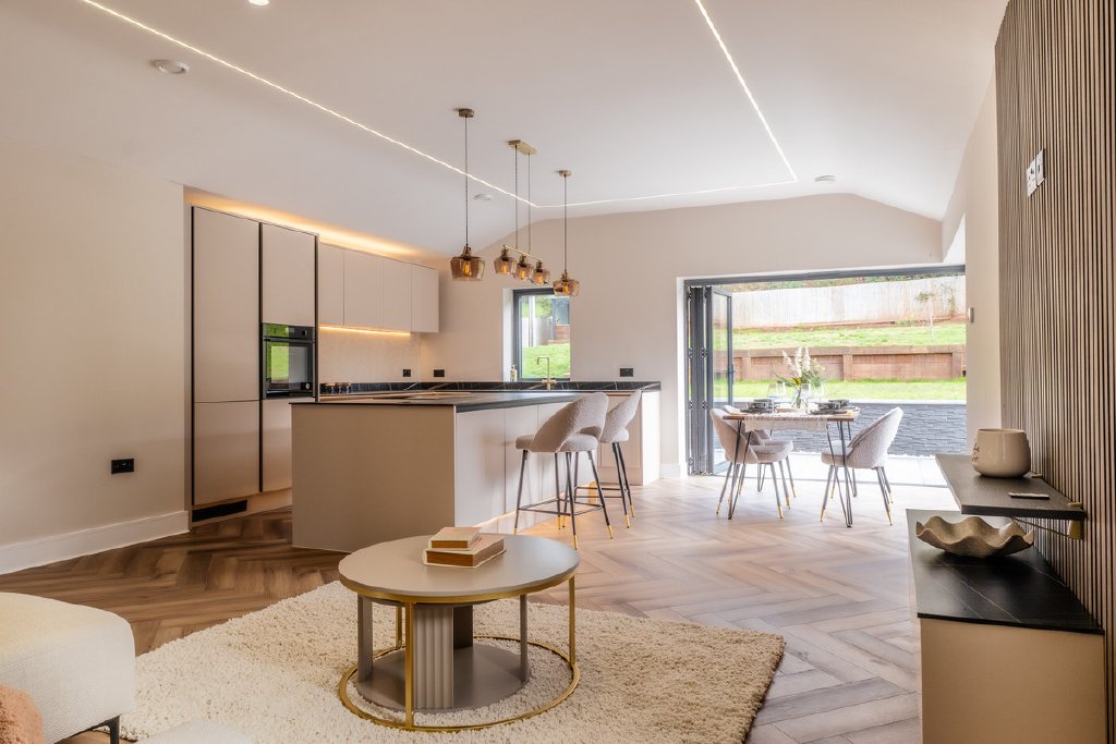 Heating – Air source heat pump, MVHR ventilation system, solar panels (owned outright) and underfloor heating.