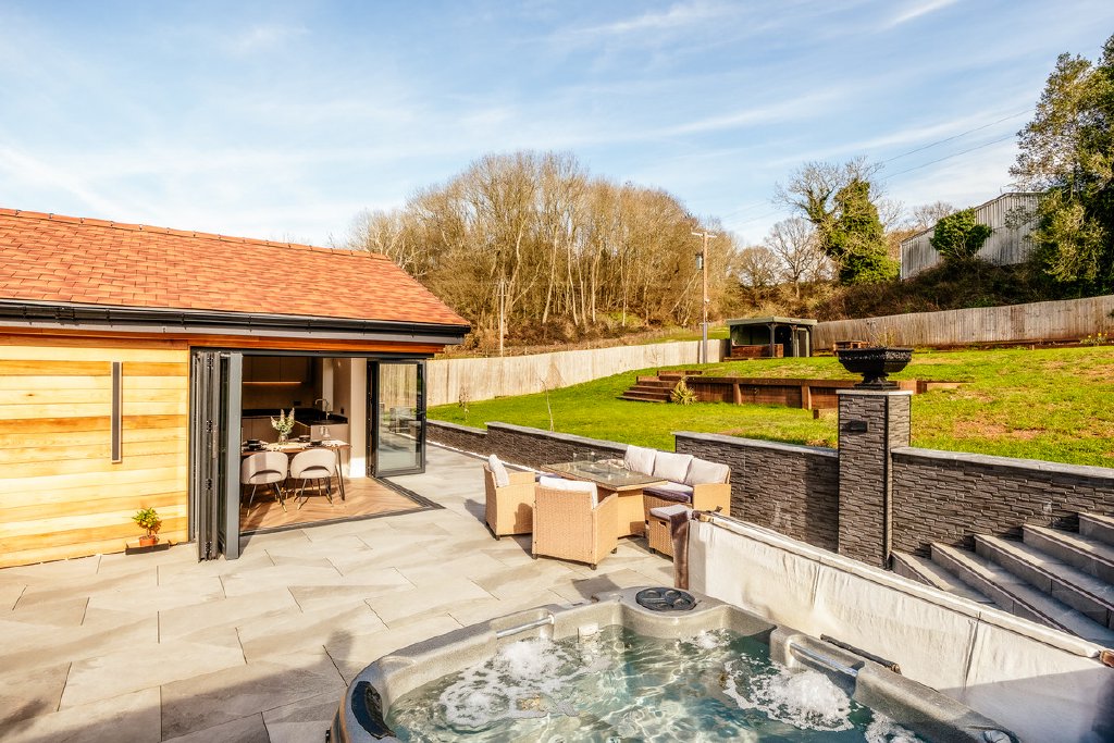 A striking, cedar-cladded, eco-home combining contemporary design with exceptional sustainable features including an impressive EPC Rating of A, which is turn-key ready. Megans Hideaway offers four spacious bedrooms, including a superb master suite with dressing room and ensuite, a modern open-plan living area and a stylish kitchen, dining, and seating area, complemented by a separate lounge and study. Energy efficiency is at the forefront, with an air source heat pump, MVHR ventilation system, solar panels, underfloor heating, and a private borehole water supply, all contributing to its impressive EPC rating. Secure, efficient, and beautifully presented, this property not only reflects forward-thinking design but also provides a welcoming family home!