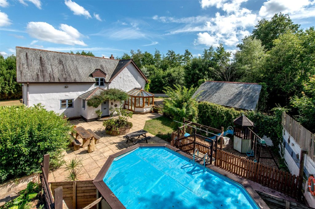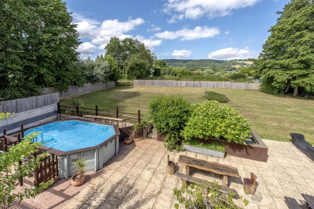 To the side of the house, an extensive patio and entertaining area provides the perfect setting for barbecues and outdoor gatherings, and currently features an above-ground pool. The patio and gardens wrap around the house, making the most of the stunning setting with the Quantock Hills forming a picturesque backdrop.