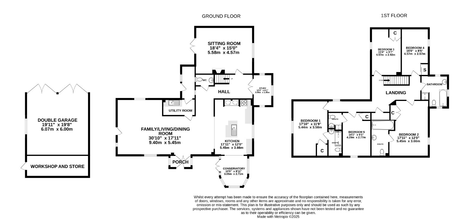 A large gravelled driveway to the front of the property provides ample parking, while a detached double garage with separate workshop and store to the rear offers additional space.