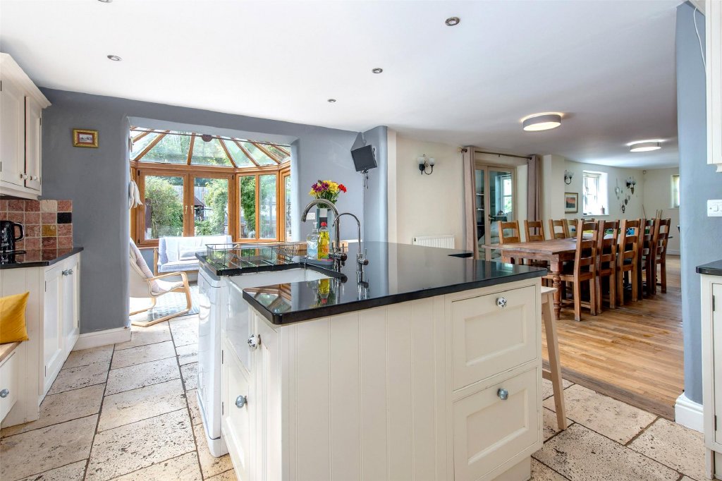To the side, there is a useful utility and boot room, while a separate sitting room with double doors opening to the garden and a wood burner provides the perfect space to relax. In addition, a small study overlooks the front aspect, offering an ideal spot for home working or reading.