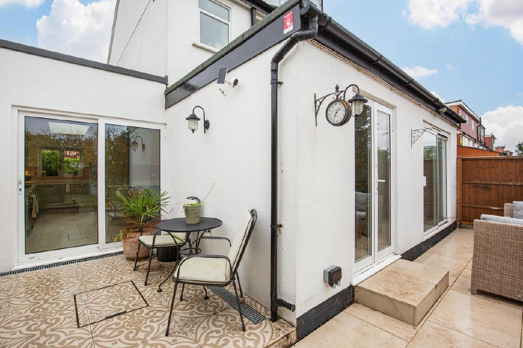 This impressive end-of-terrace property offers more than 1,500 sq ft of stylish living space, thoughtfully arranged over three floors. Finished to a high standard throughout, the home combines generous proportions with modern design and an exceptional sense of light and flow. The ground floor has been cleverly extended to create a semi open-plan kitchen and dining space that serves as the heart of the home. The contemporary kitchen features a large skylight, integrated appliances, and sliding doors opening directly onto the garden, creating a connection between indoor and outdoor living. A separate front reception room provides a peaceful retreat, ideal for relaxing evenings or entertaining guests. Upstairs, the first floor comprises three well-proportioned bedrooms and a family bathroom. The top floor is dedicated to an impressive principal suite with built-in storage, an en-suite shower room, and eaves storage, offering both comfort and privacy. Outside, the property enjoys a well-kept rear garden with a patio area perfect for al fresco dining, along with direct side access that offers the potential to drive in. There is also a detached garage and an additional office space, ideal for working from home or use as a gym or studio. Presented in excellent condition throughout, this home is ready to move straight into. Its combination of space, quality, and practicality makes it an ideal choice for families or professionals seeking something special in a well-connected yet peaceful setting. Worple Road is one of Isleworth’s most desirable addresses, known for its attractive period homes and friendly community feel. The property is within walking distance of Isleworth Station, local shops, and several excellent schools. Nearby green spaces such as Syon Park and the River Thames provide beautiful spots for weekend walks, while Richmond and Kew are just a short drive away. A beautifully balanced home offering refined modern living, excellent space, and an enviable location in the heart of Old Isleworth.