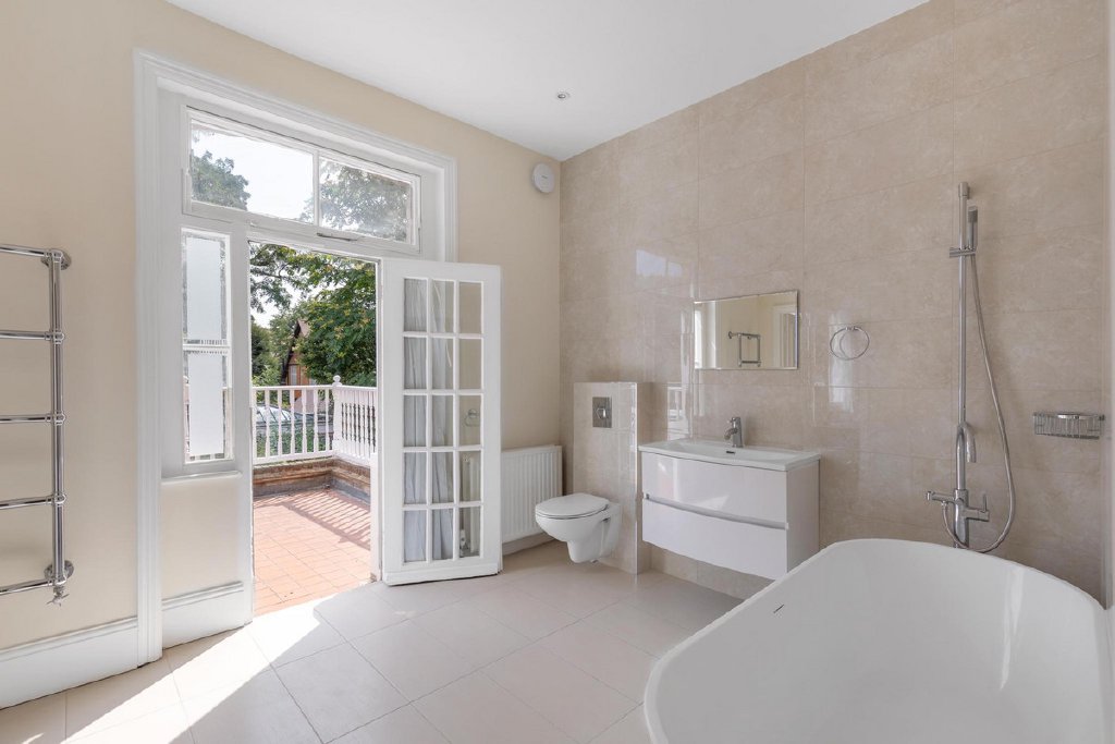 The upper floors host a superb principal suite with access to a private south-facing roof terrace, five further well-proportioned bedrooms, and ample loft storage. The property also enjoys a magnificent 66ft landscaped rear garden, ideal for entertaining and outdoor living, as well as a second 24’10 roof terrace.