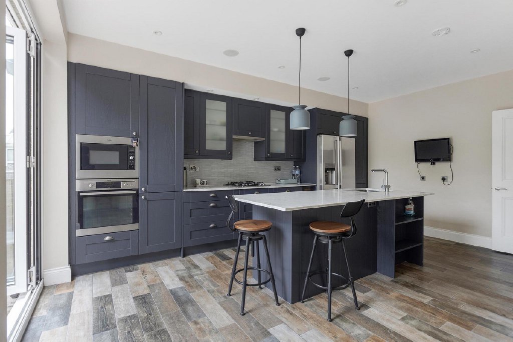 Set over three well-considered floors, the property has been thoughtfully arranged to balance period character with contemporary convenience. The ground floor has been beautifully opened to create a generous dual-aspect living and dining area, enhanced by underfloor heating and integrated ceiling speakers — perfect for both entertaining and day-to-day family living with bi fold doors opening onto a low maintenance, south west facing garden, the perfect spot for hosting summer BBQ with friends, or al fresco dinners with the family. A separate formal lounge and a ground floor WC further add to the functionality and comfort of the home.