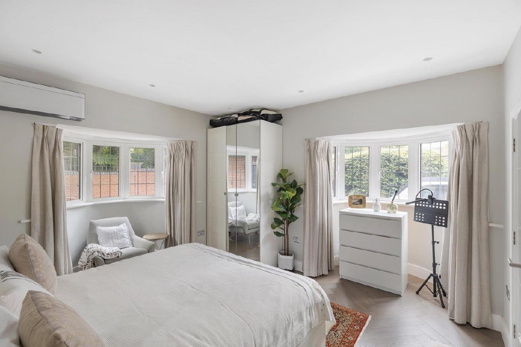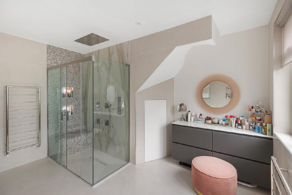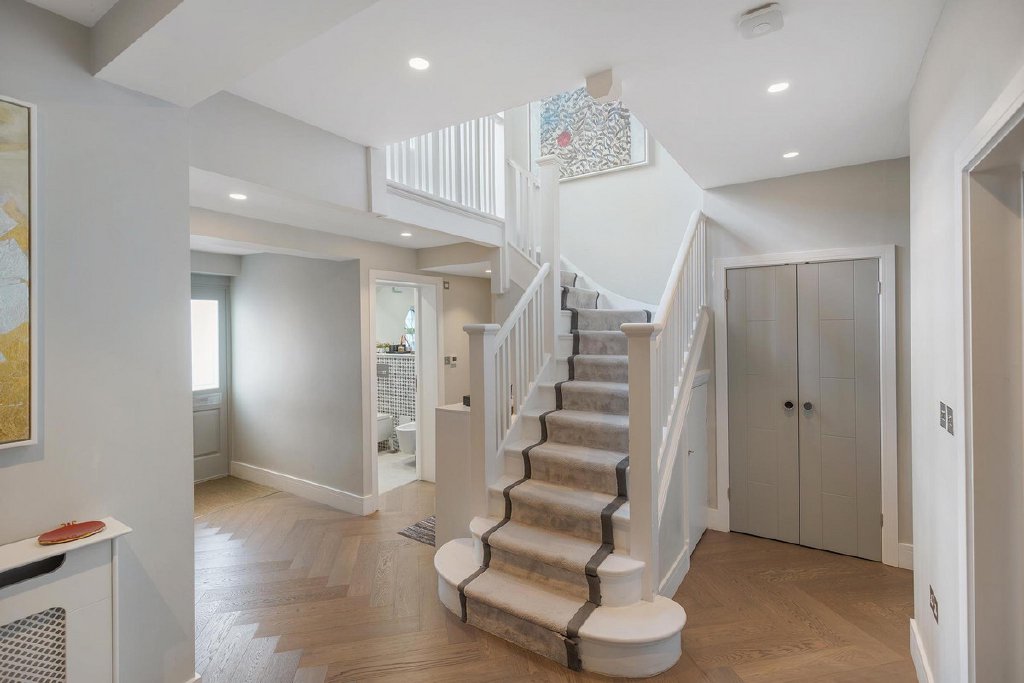 Five/six well-appointed bedrooms are arranged over the upper levels, including a sumptuous principal suite complete with a bespoke dressing area and luxurious en suite bath and shower room. A further three contemporary bathrooms and a stylish guest cloakroom ensure comfort and convenience for family and guests alike. The top floor also offers an excellent guest suite or teenage retreat with eaves storage and an abundance of natural light.