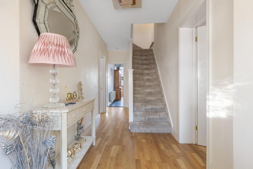 Upstairs, the first floor accommodates four bedrooms, each with its own character and generous proportions that make them suitable for both family members and guests. Two well-appointed bathrooms serve this level, providing comfort and convenience for busy households. A standout feature is the extensive loft space, already equipped with flooring and built-in storage, which brings the total internal area to an impressive 2,370 square feet (220 square metres). Subject to the necessary consents, this area could be converted into an additional bedroom, home office, or recreational room.