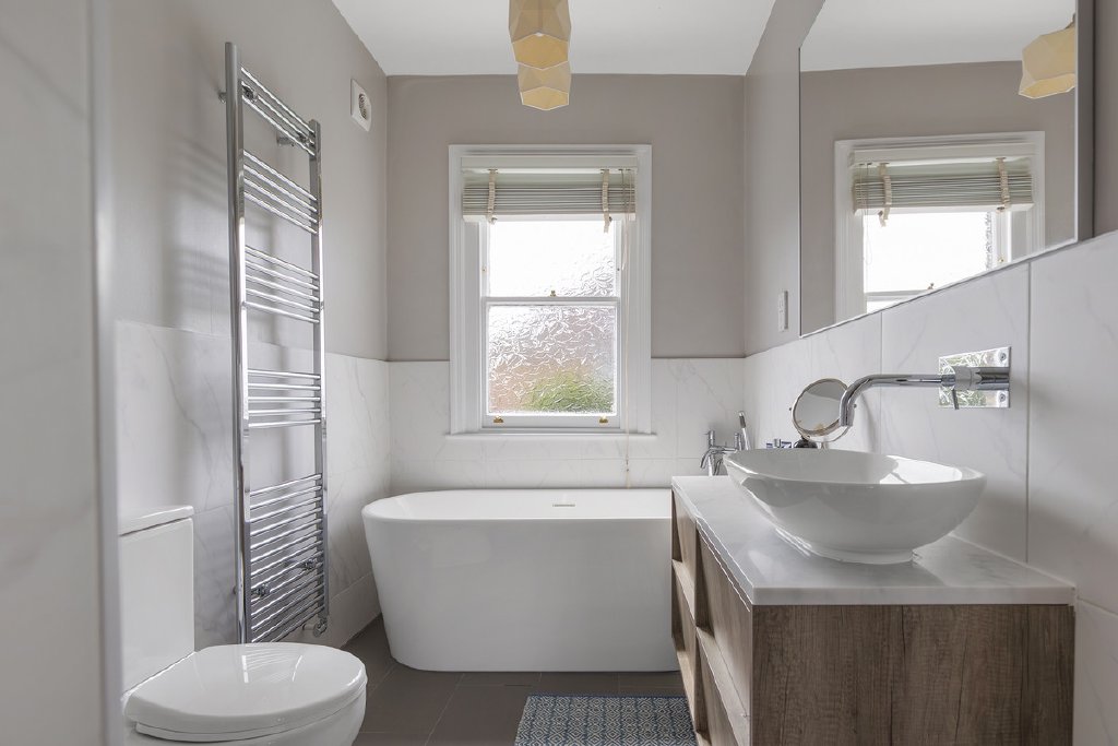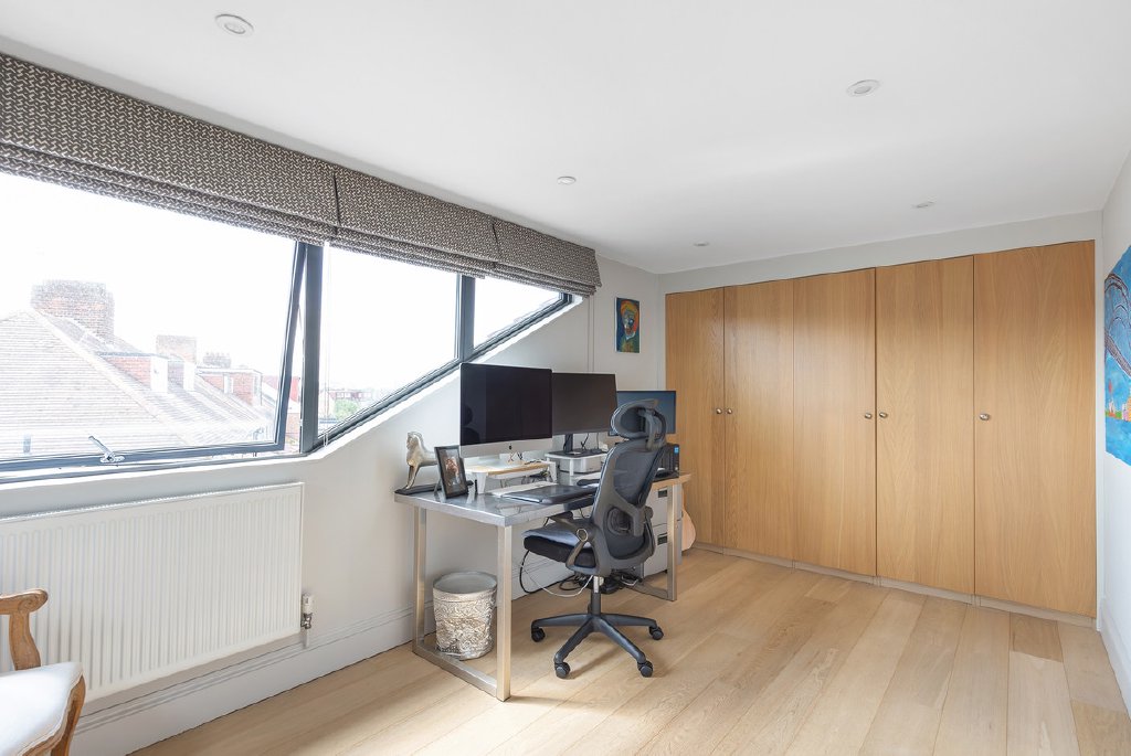The first floor offers four well-appointed bedrooms and two stylish bathrooms, while the top floor hosts the luxurious principal suite with a Juliette balcony , a sixth bedroom, and a sleek contemporary shower room ideal for guests or a growing family.