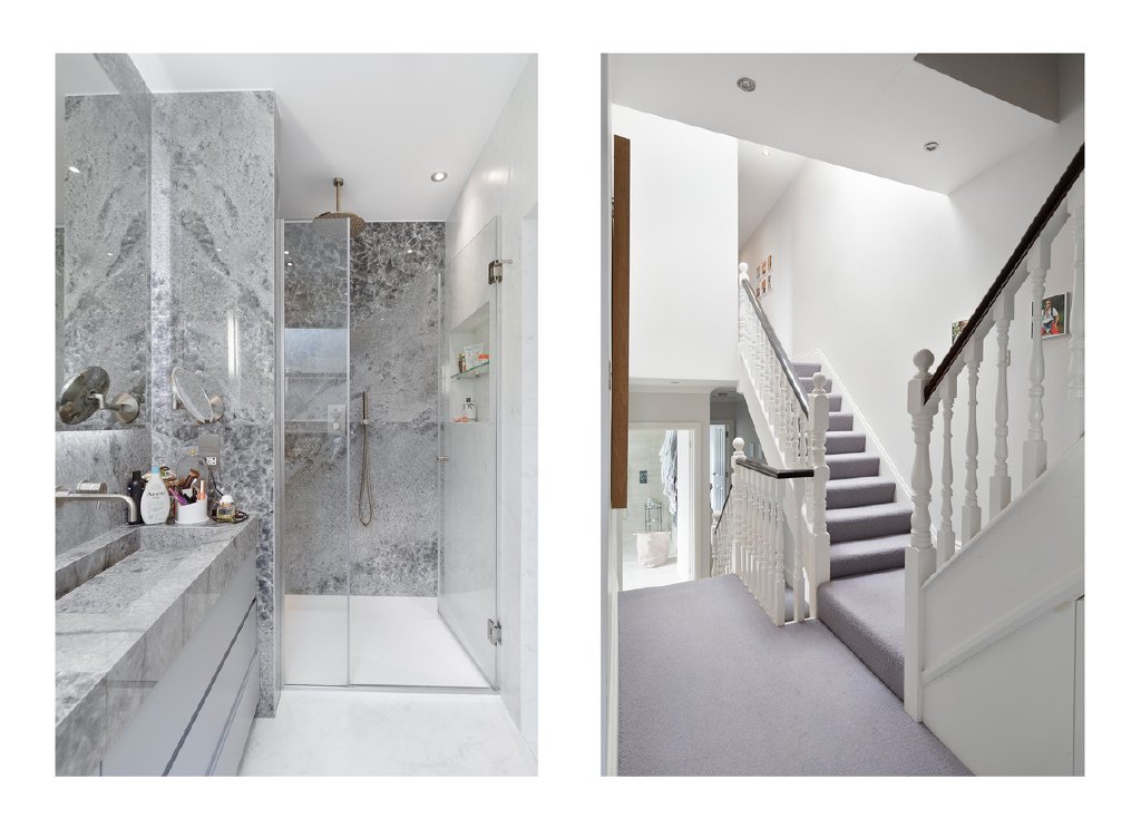 On the first floor, you'll find three well-proportioned bedrooms and a stylish family bathroom. The luxurious principal suite is a true retreat, featuring walk-in wardrobes and a contemporary en suite bathroom. The cleverly designed second floor is split by a staircase leading in two directions: to the rear, two additional bedrooms and a family bathroom, and at the front, an entire floor dedicated to a large, private bedroom with its own en suite.