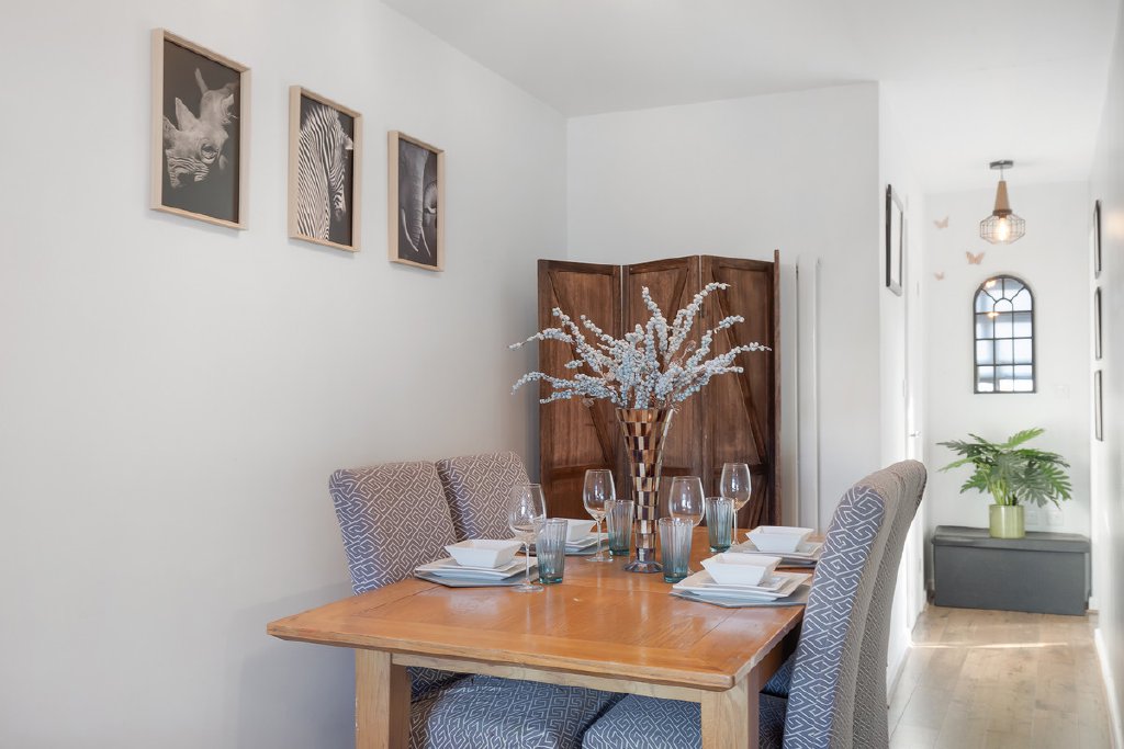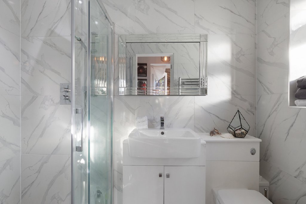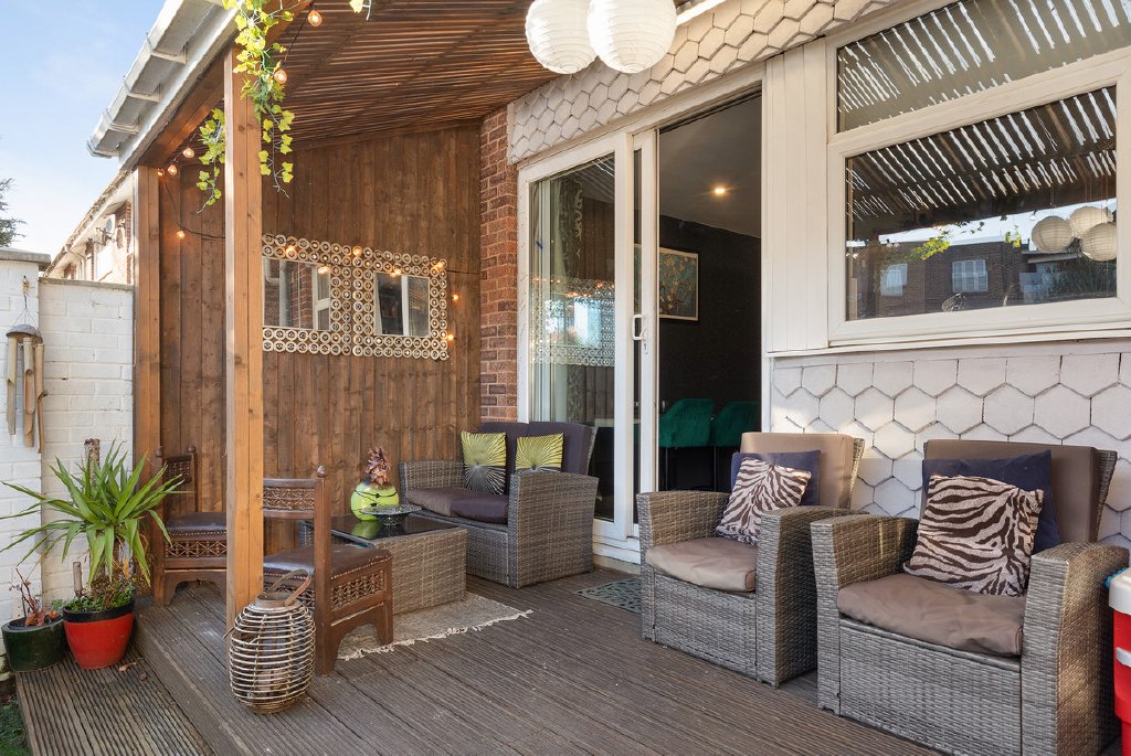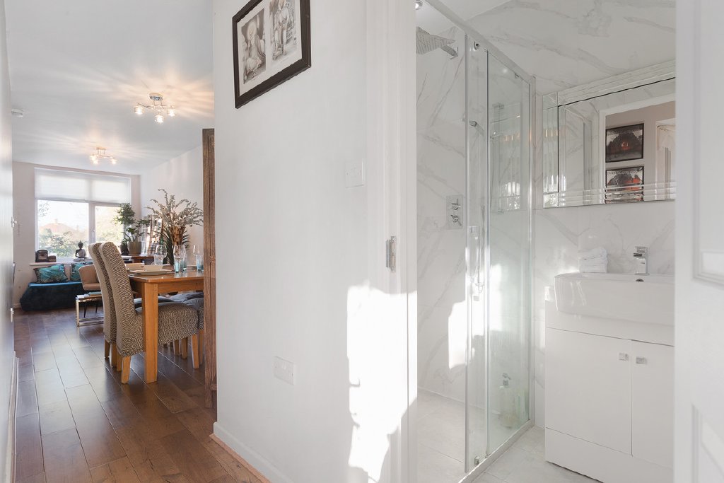 Step through the door into a meticulously designed space, where the downstairs unveils a sprawling wrap-around reception/dining room, a convenient downstairs shower room, and a modern fitted kitchen. The kitchen opens up to a beautiful decking area that leads to a generous rear garden, providing the perfect setting for outdoor enjoyment.