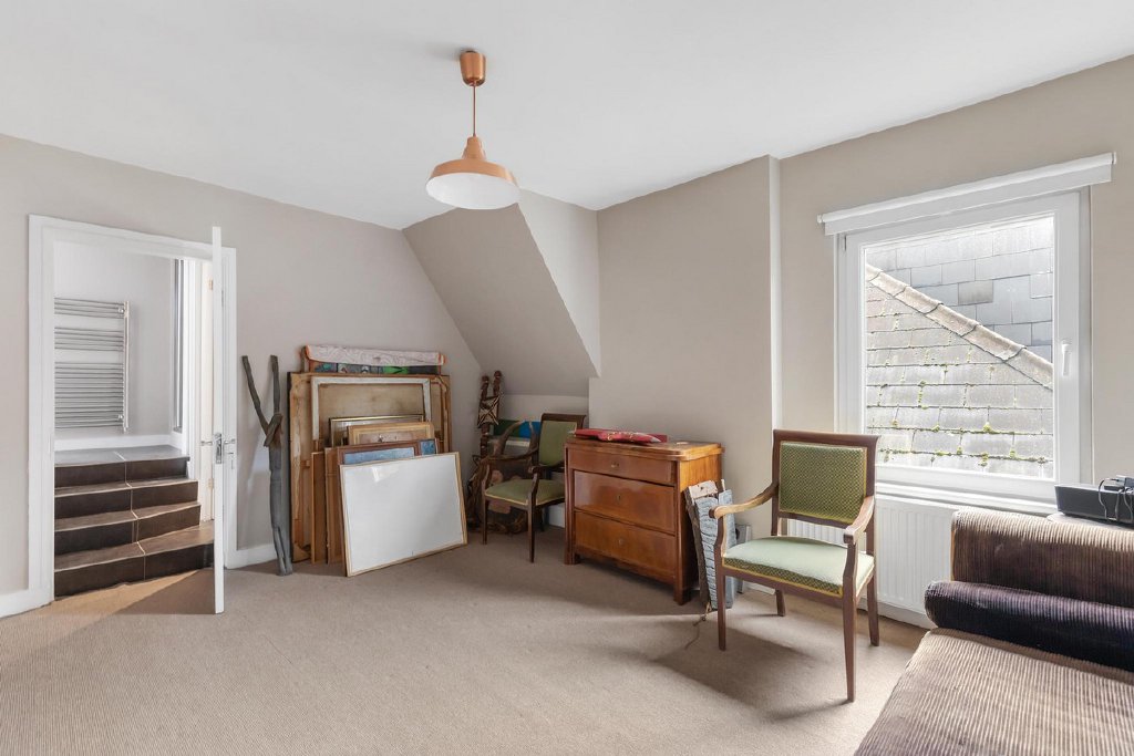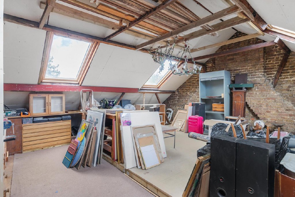 Ascending to the first floor reveals a modern shower room, two double bedrooms adorned with built-in storage - one featuring a dressing room, the other an indulgent ensuite bathroom. This floor also hosts a double reception room, offering flexibility as two bedrooms and a study. The second floor unfolds with two more double bedrooms, a WC, and an awe-inspiring attic space with eaves storage, presenting boundless potential for conversion into a cinema, games room, nursery, reception space, or a luxurious principal bedroom.