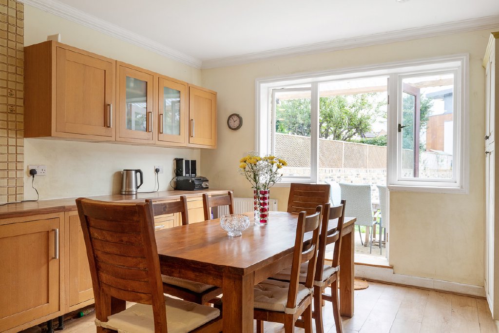 The interior of this home exudes timeless charm, showcasing a harmonious blend of original features and modern amenities. The ground floor welcomes you with an elegant entrance hall, leading to a bay-fronted dining room that seamlessly flows into a spacious kitchen, creating a perfect setting for hosting gatherings. The kitchen also provides direct access to the garden. Completing this floor is a family bathroom and two additional reception rooms, one of which features a conservatory that opens up to the garden.