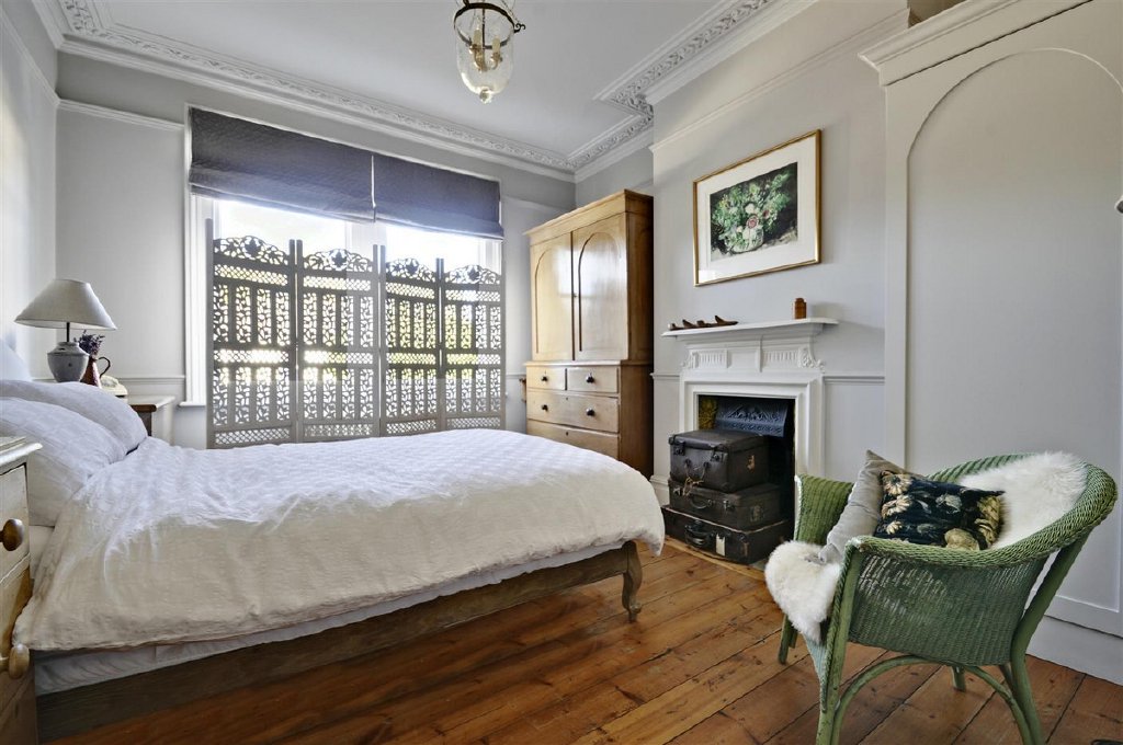 This exceptional Victorian home offers a combination of modernised interior and original period features, with the benefits of a huge 25 metre south-facing garden. The ground floor has solid oak flooring throughout and features a spacious front reception room with sash bay window, boasting the original fireplace and ceiling plaster work. There is also a fitted kitchen with gas Aga, attached bright open plan dining room, with a new modern wood-burning stove and French windows leading to verdant garden, and a downstairs WC with attached large utility space.