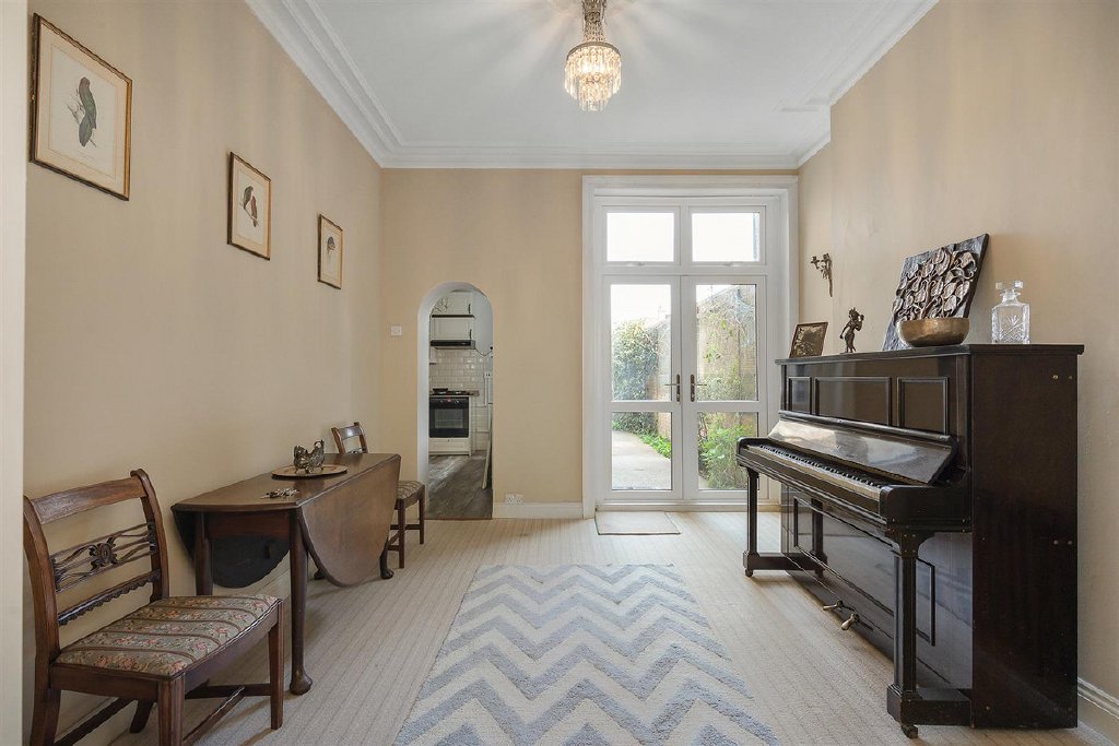 This impressive three storey five-bedroom period family home is situated on a sought-after tree lined street in Poets Corner. The house has been beautifully presented, starting with charming front garden themed with Original Style Victorian tiles. The property is laid out over three floors and offers fantastic proportions and exceptional taste. As you enter the property to a welcoming hallway which leads to an impressive reception room with ornate fireplace, high ceilings and period charm.