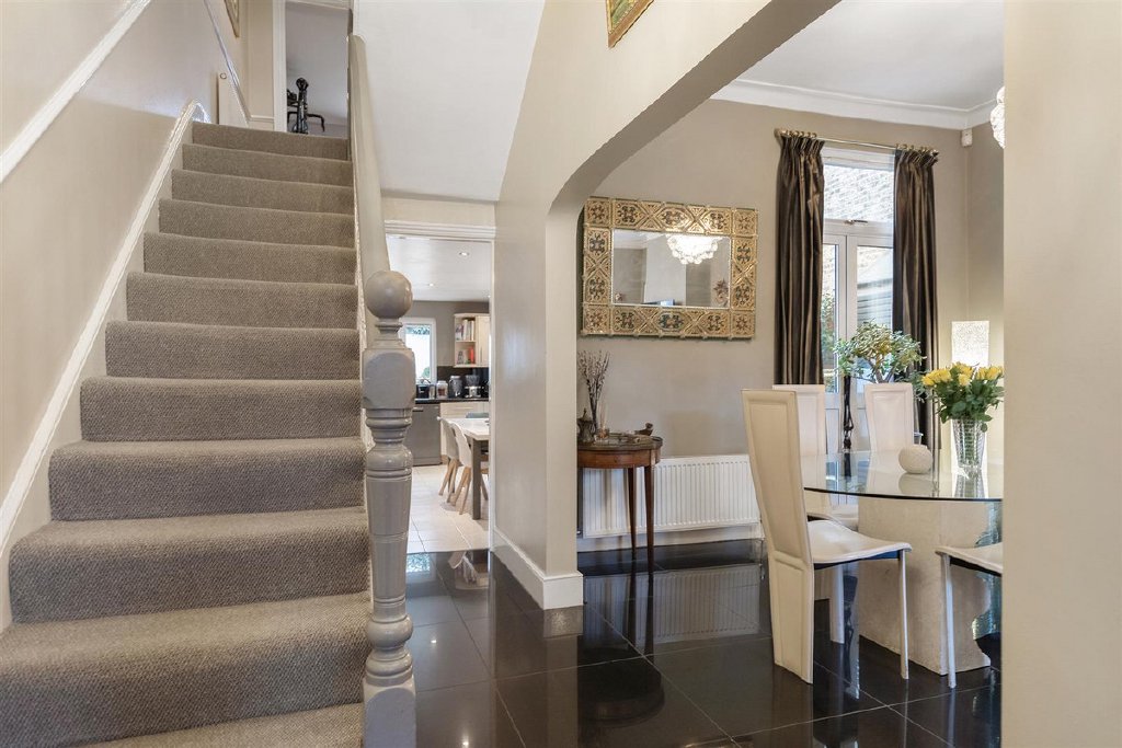 As you enter the property you are greeted by an impressive entrance hallway, setting the tone for what can be found throughout the rest of the home. The hallway leads into a spacious dual-aspect living room with exceptional interior design choices, creating a luxurious yet homely atmosphere. The living room flows seamlessly into the open-plan kitchen and dining area, making it perfect for entertaining guests or spending quality time with family. The kitchen is equipped with top-of-the-range appliances, sleek countertops, and ample storage space. The dining area overlooks the south facing low maintenance garden offering a peaceful and serene setting.