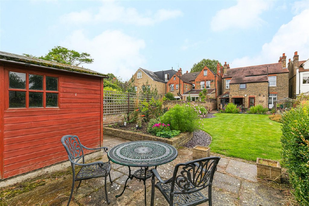 At the rear of the residence lies a captivating landscaped garden spanning 100 feet, a rare gem in urban living. A terrace offers a delightful space for outdoor dining and entertainment, while well-stocked borders and a resplendent lawn lend a touch of natural elegance. A sun-soaked patio area and a corner designated for you own min allotment.