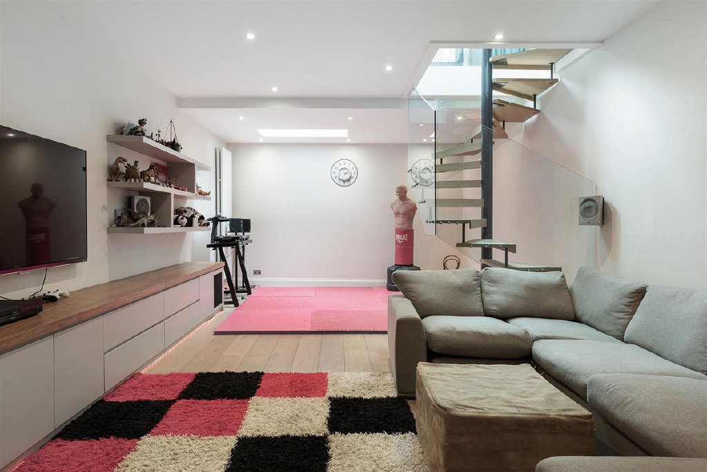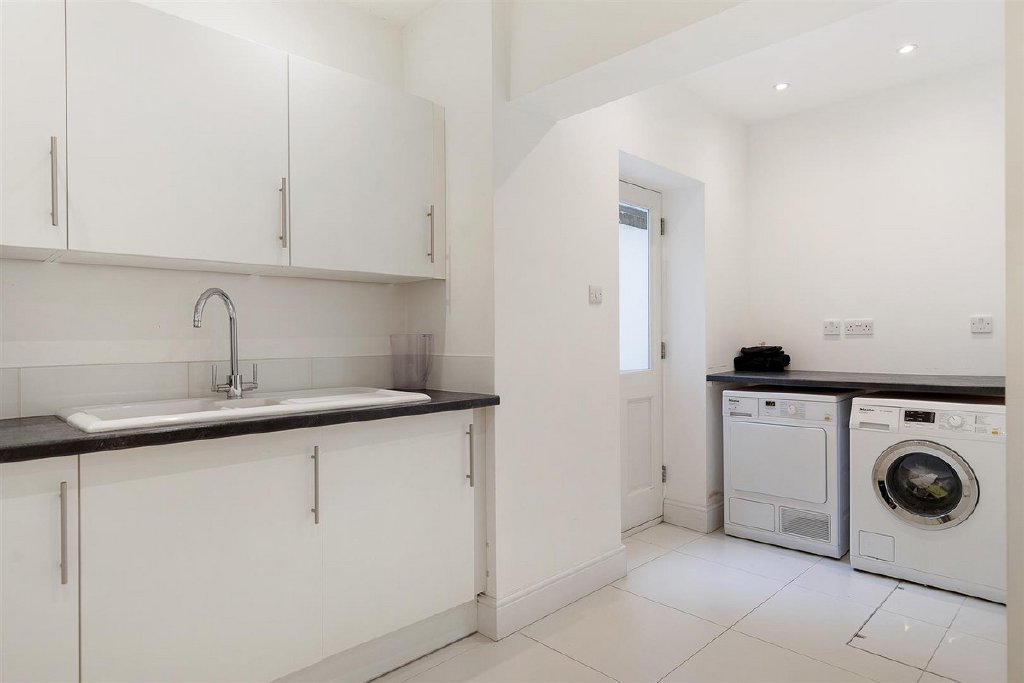 The property features an additional reception room to the front, currently used as a study, as well as a utility room with cloakroom and side access, adding to the home's overall convenience and comfort. The lower ground floor is a true delight, featuring a media/playroom, gym, wine cellar, second utility room, boiler room, cloakroom, and a self-contained double bedroom with an ensuite shower room and kitchenette - an ideal retreat for guests or a nanny.