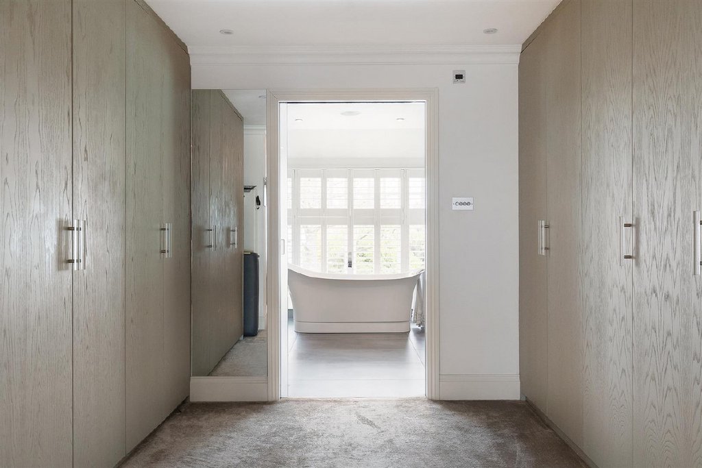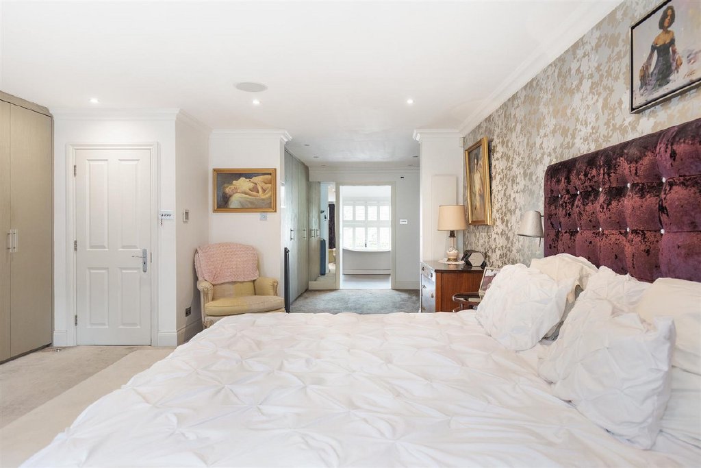 The first floor is dedicated to the opulent primary bedroom suite, comprising a generously proportioned double bedroom with fitted wardrobes, a walk-through dressing room, and a lavish bathroom with underfloor heating - a tranquil haven to unwind after a long day. Two additional bedrooms (one currently used as a dressing room) and a beautifully appointed shower room complete this floor. The second floor is equally impressive, boasting three generously sized double bedrooms and two stylish bathrooms, all with underfloor heating.