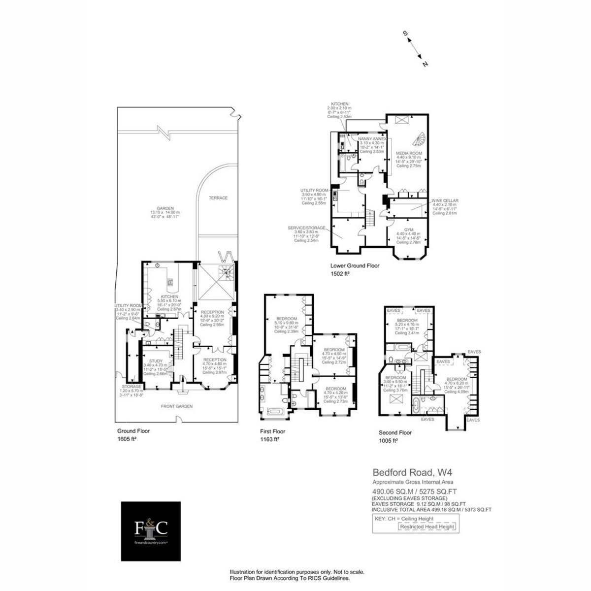 This exceptional property exudes elegance and sophistication throughout, boasting a superbly appointed living and entertaining space that is sure to impress. As you enter, you are welcomed by a spacious tiled entrance hallway with underfloor heating that leads to a spacious reception room, a beautifully appointed dining room and a contemporary Gaggenau fitted kitchen that is practical in design and functionality with an abundance of storage.|The property features an additional reception room to the front, currently used as a study, as well as a utility room with cloakroom and side access, adding to the home's overall convenience and comfort. The lower ground floor is a true delight, featuring a media/playroom, gym, wine cellar, second utility room, boiler room, cloakroom, and a self-contained double bedroom with an ensuite shower room and kitchenette - an ideal retreat for guests or a nanny.|The first floor is dedicated to the opulent primary bedroom suite, comprising a generously proportioned double bedroom with fitted wardrobes, a walk-through dressing room, and a lavish bathroom with underfloor heating - a tranquil haven to unwind after a long day. Two additional bedrooms (one currently used as a dressing room) and a beautifully appointed shower room complete this floor. The second floor is equally impressive, boasting three generously sized double bedrooms and two stylish bathrooms, all with underfloor heating.|The house benefits from a fantastic rear garden, much larger than is usually found in Bedford Park, offering both patio and lawn areas bordered by mature trees and shrubs - a serene oasis in the heart of the Chiswick.|Nestled in the highly desirable Bedford Park area of Chiswick, this property is within easy walking distance of the sought-after independent schools Orchard House and Chiswick and Bedford Park Preparatory School, making it the perfect location for families. The property is also a short stroll from Turnham Green Terrace, Turnham Green (Distri