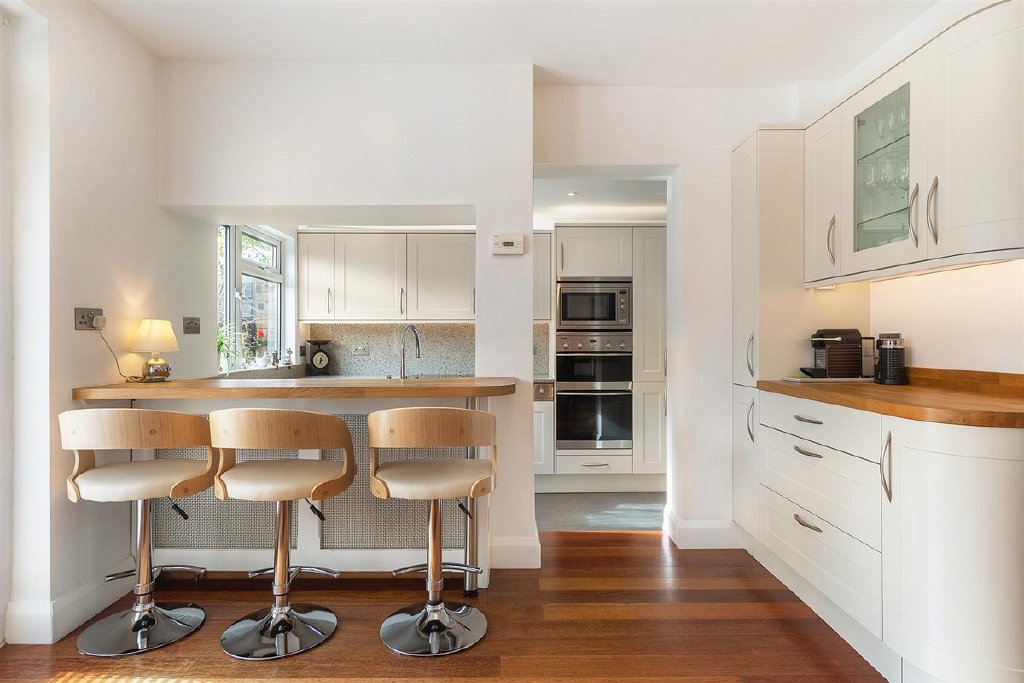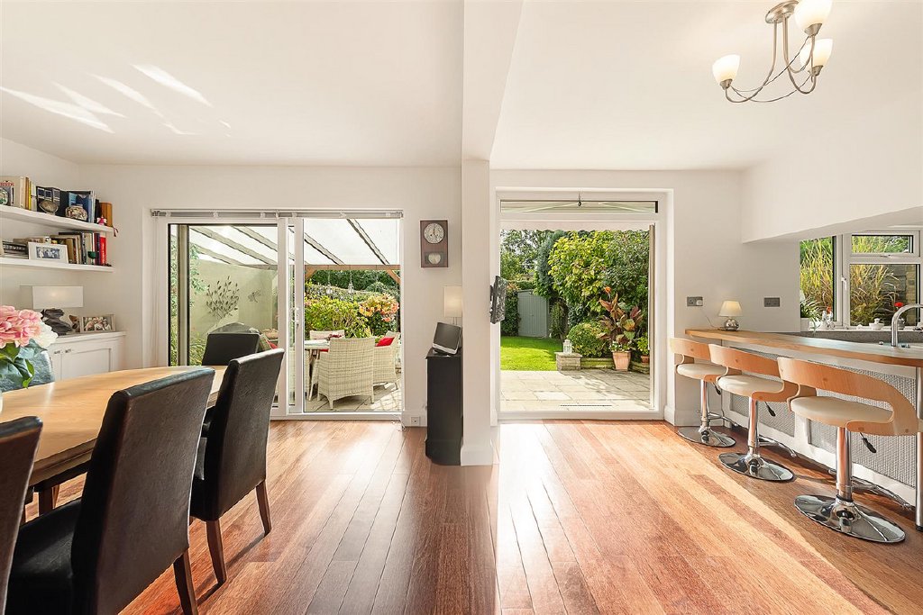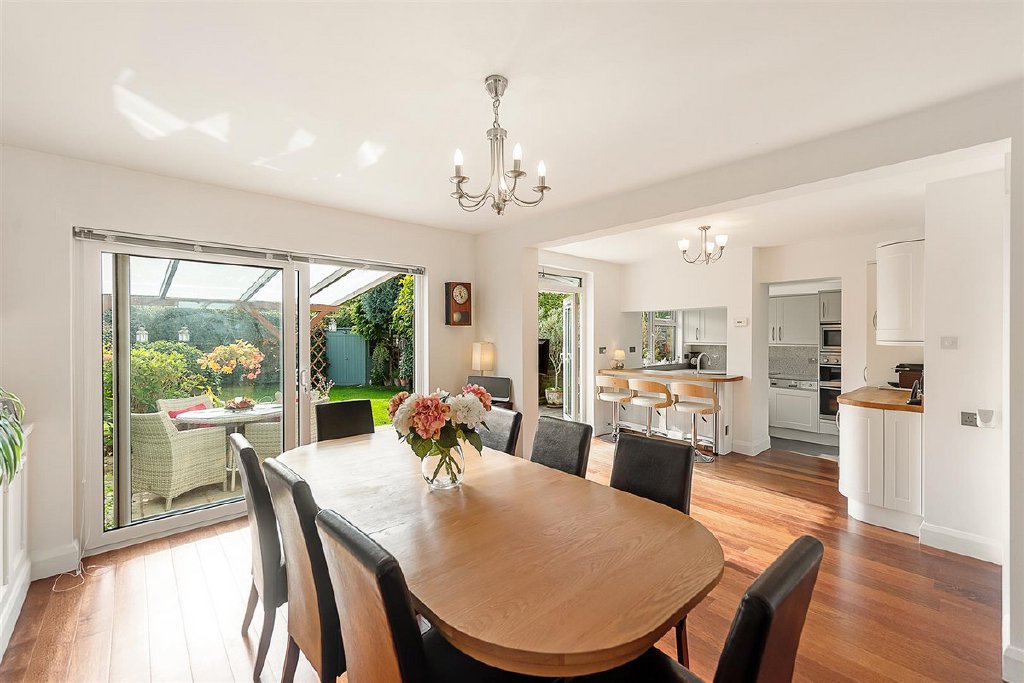 As you enter the house you are greeted by a large entrance hallway leading onto spacious reception room with bay window and wood burning stove. Further through the hallway you have under stairs storage and a guest cloakroom, you then enter the extended kitchen, dining area equipped with Miele appliances, granite worktops and breakfast bar. This space is certainly where you will likely spend most of your time, it’s a wonderfully bright and open space, perfect for entertaining with two access points onto the 50ft south facing garden, this really will be the heart of the home. Off the kitchen, there is utility area and access to the garage which is currently being used for storage. On the first and second floors, you have five bedrooms, two singles and three doubles, with a modern family bathroom plus an en suite and additional bathroom on the top floor, where you will also find a third reception room.