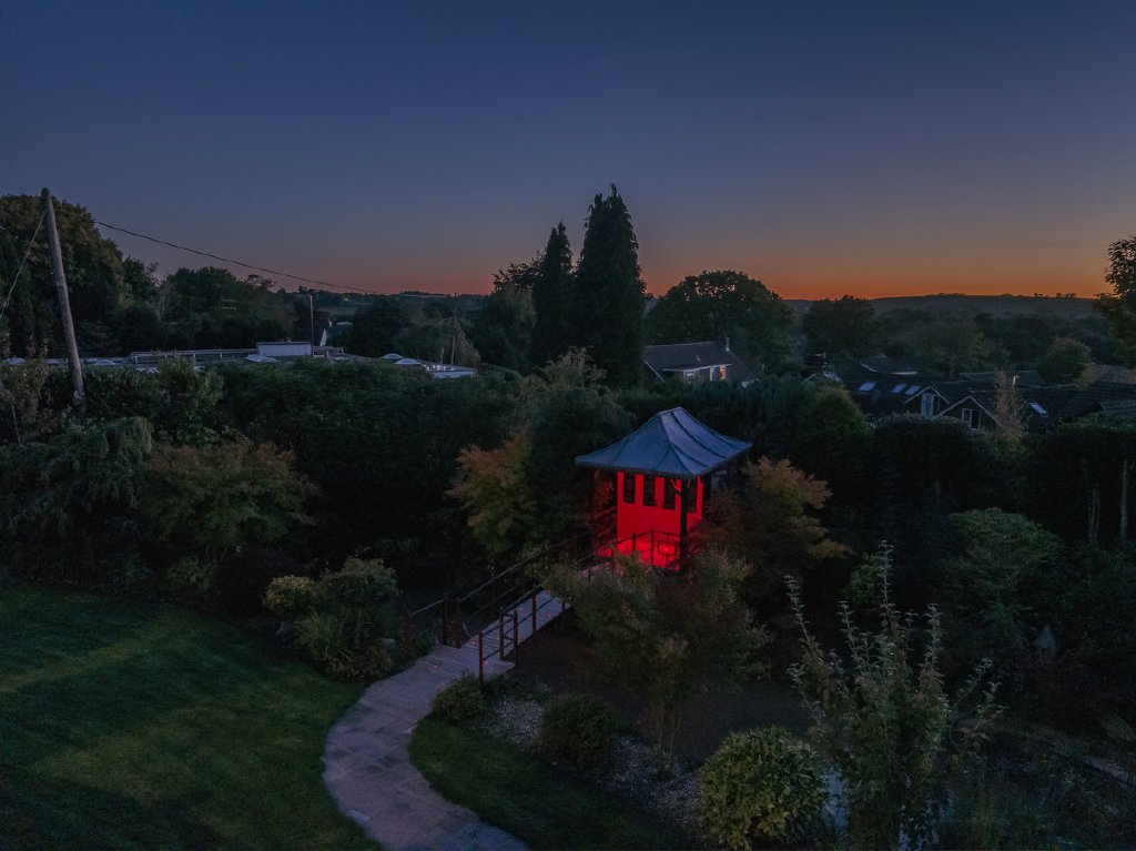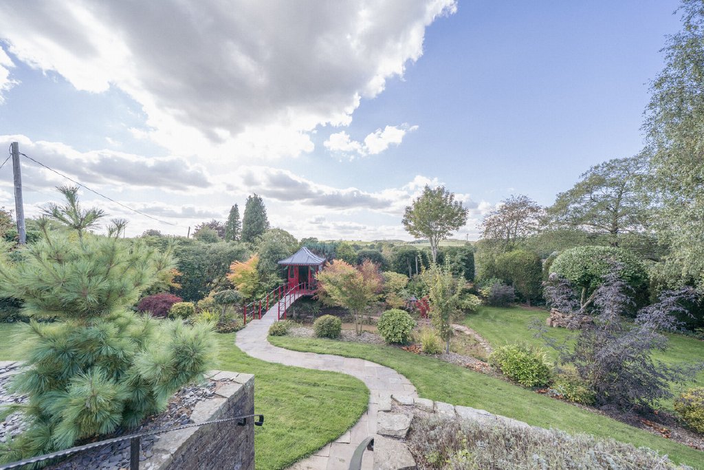 The gardens are a delight, a kitchen garden with a glass greenhouse, chicken coup and raised beds sits opposite the kitchen windows, the tool barn is perfectly stacked with logs and the incredible energy efficient solar cell, ground source heat pump, windmill and water filtration system with the original Beech Tree keeping watch over the back gardens that flow down avenues of silver birch to a magical Magnolia tree and Japanese garden complete with pond, bridge and a summer pavilion. Beechcroft is an elegant home that embraces the natural world beyond .