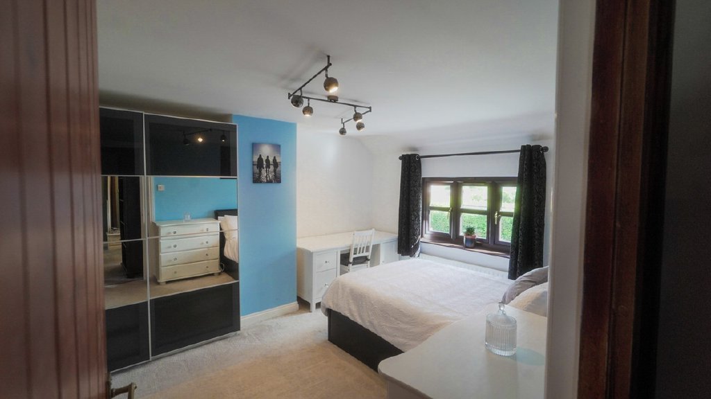 The open plan family kitchen with underfloor heating through to the laundry was once the former sitting room and has evolved through several iterations, from playroom, bar to now the heart of the home with sitting and breakfast area, beautiful bespoke kitchen units in the Shaker style offering country living at its finest. Multiple reception rooms provide versatile formal entertaining, relaxation, a simply gorgeous garden room with underfloor heating, a private study, and there is even a dedicated gym. Every corner of the home has been enhanced for comfort and style, reflecting a modern family’s need for practicality without sacrificing elegance. The first floor has a wonderful galleried landing overlooking the dining hall below and is bathed in natural light. The luxurious principal bedroom suite offers the perfect retreat with a wonderful ensuite and fitted wardrobes. The remaining 3 large double bedrooms and family bathroom are ideal for family and guests.