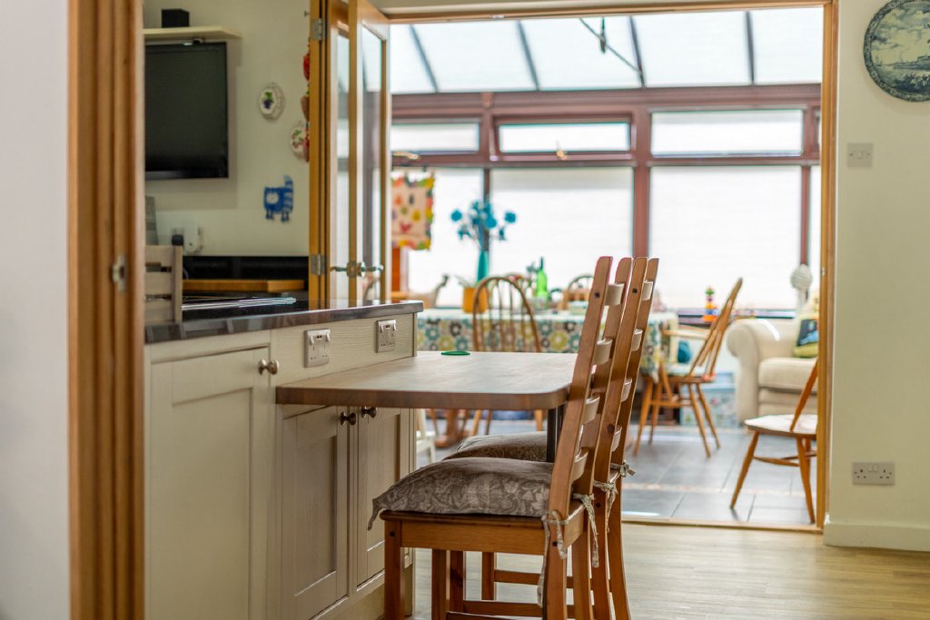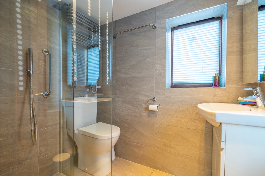 The annexe, while fitted with its own LPG combi boiler for central heating and hot water, also benefits from connection to the main solar PV system, further enhancing its energy efficiency.