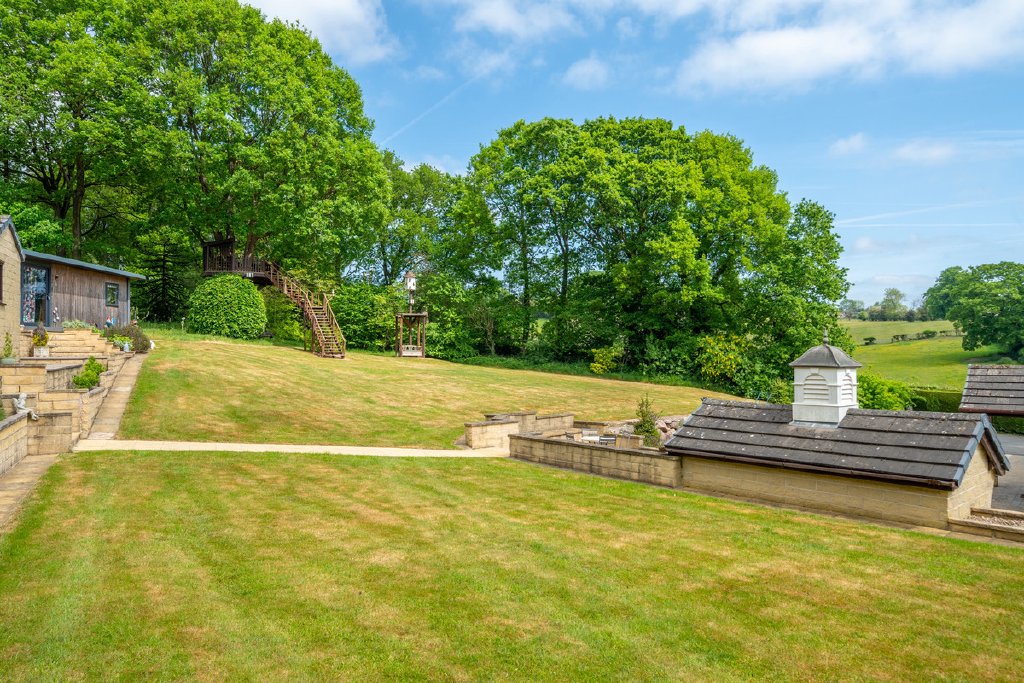 - Large private garden with patio areas, natural wooded area with a formal pond, as well as a wildlife pond, treetop viewing area and a range of outbuildings