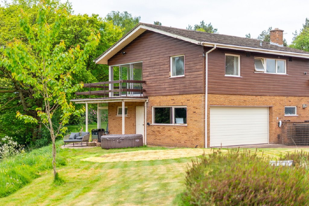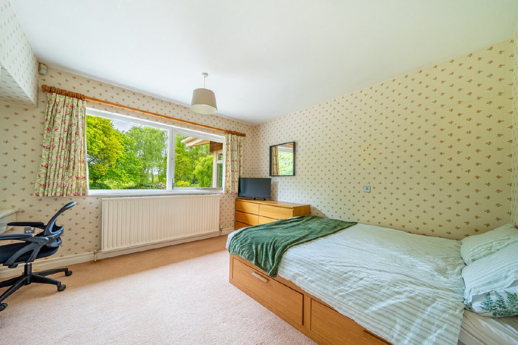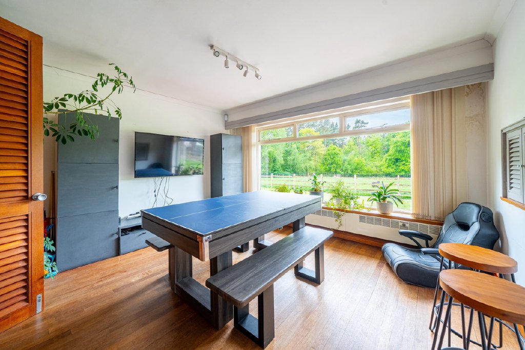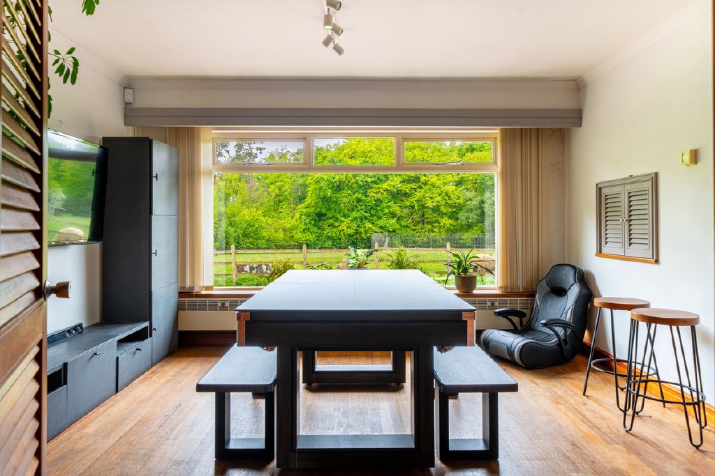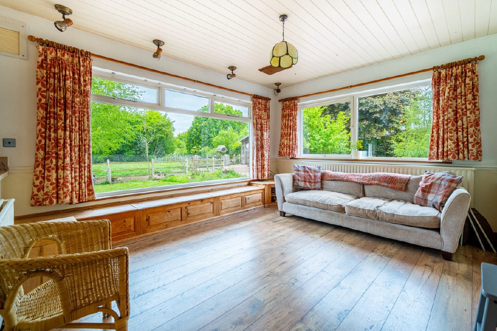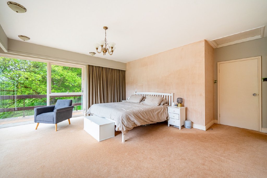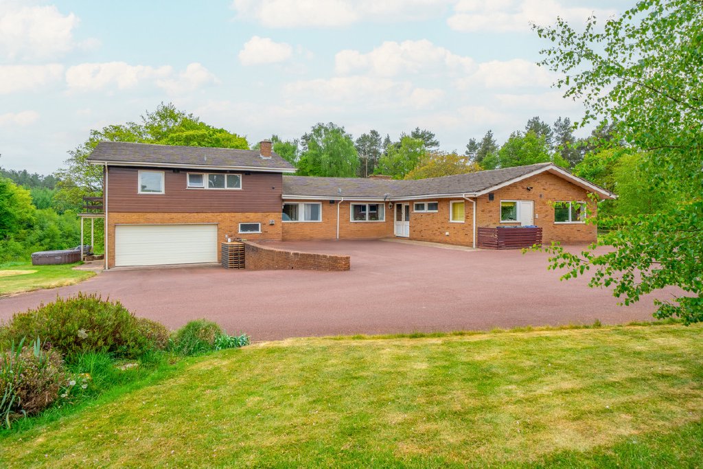 Predominantly single-storey with a partial split-level design, the property currently provides substantial and well-planned accommodation. All principal rooms command fine views over the surrounding grounds and neighbouring woodland, offering an excellent framework for future renovation.