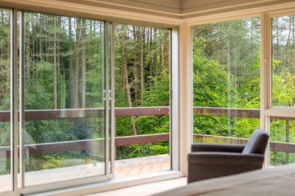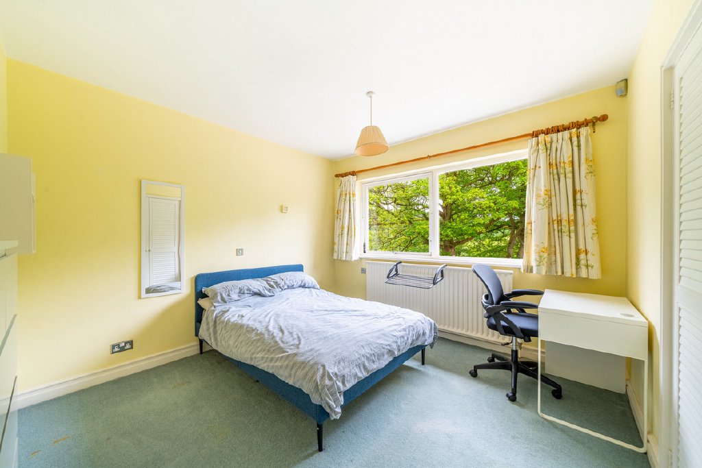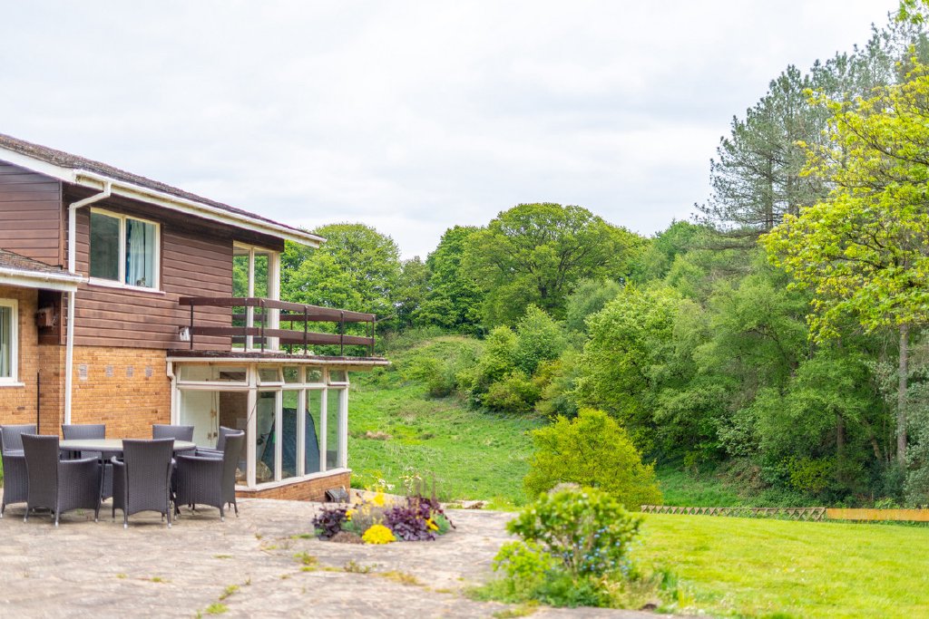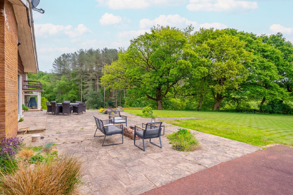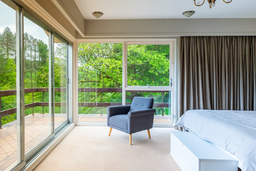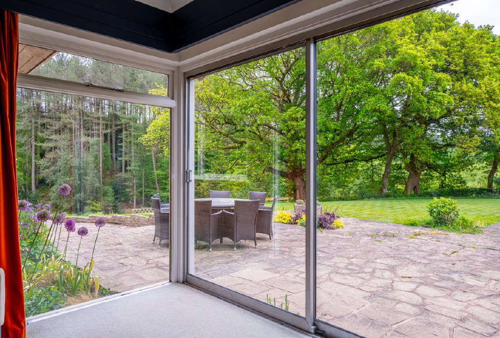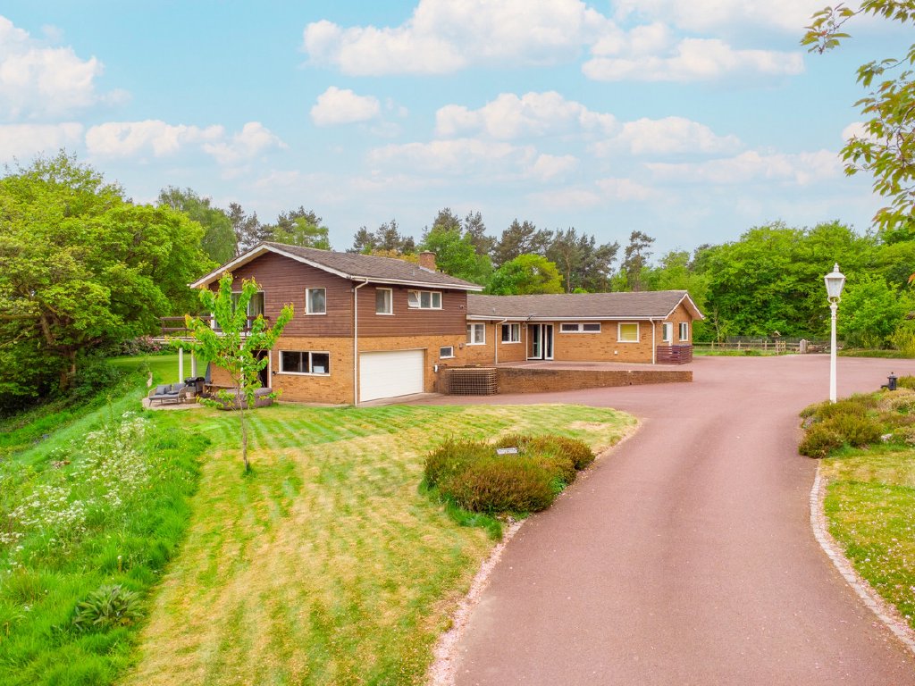 Predominantly single-storey with a partial split-level design, the property currently provides substantial and well-planned accommodation. All principal rooms command fine views over the surrounding grounds and neighbouring woodland, offering an excellent framework for future renovation.