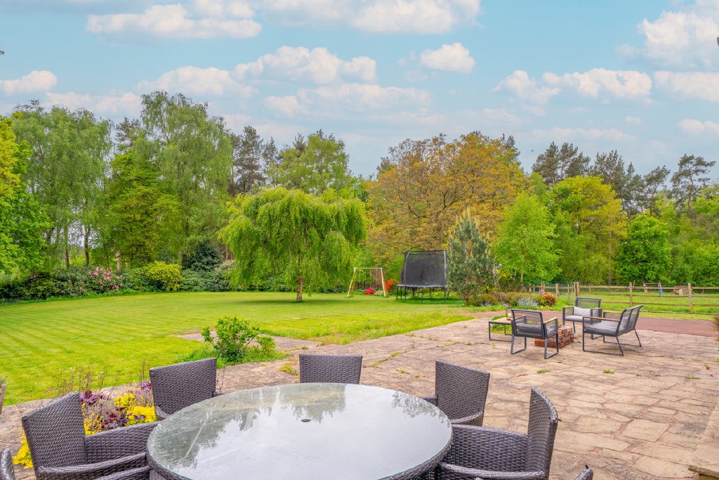 Externally, the property is equally impressive, with extensive gardens, paddocks, a tennis court, and a woodland-enclosed paddock extending to around 5 acres. A sweeping driveway provides ample parking, complemented by a cedar wood garage and large timber storage shed.