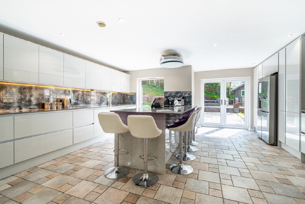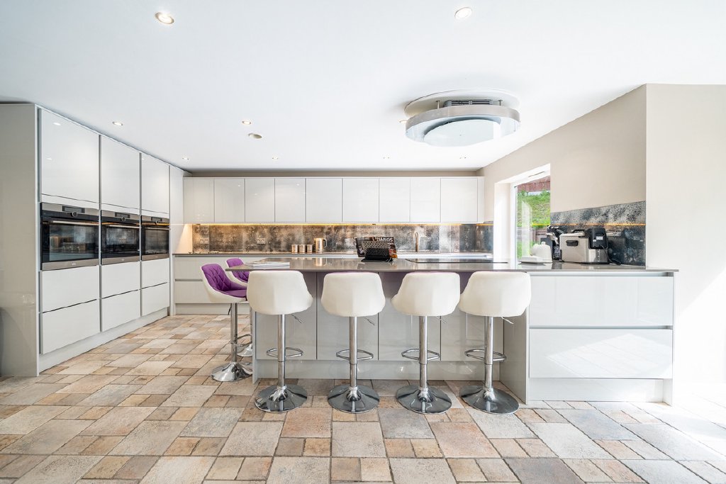 - Spectacular open plan kitchen/diner with bespoke cabinetry and high end appliances