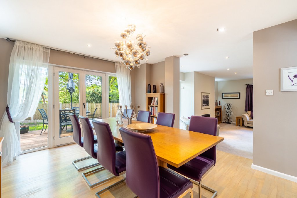French doors lead out to the large landscaped garden.