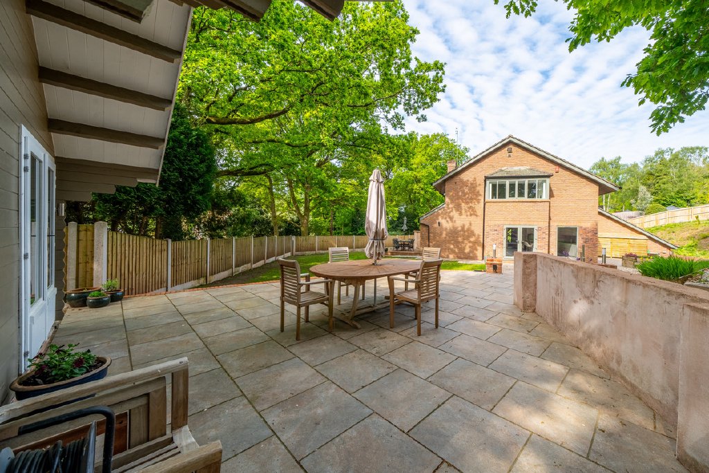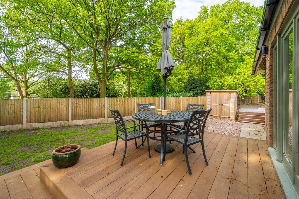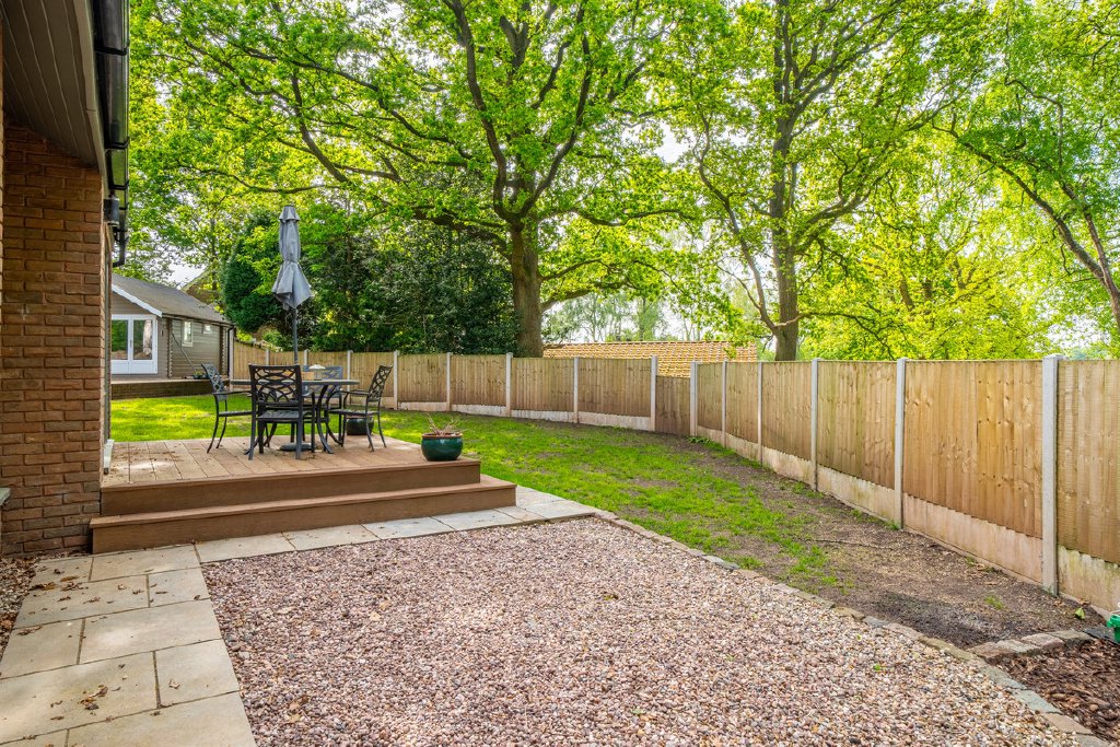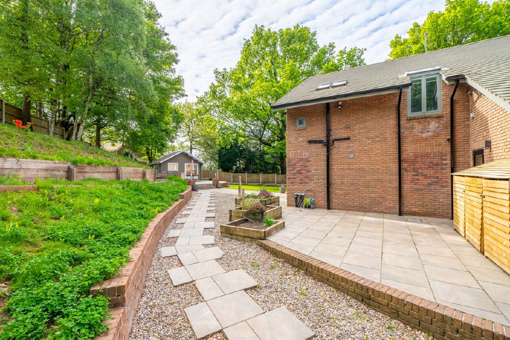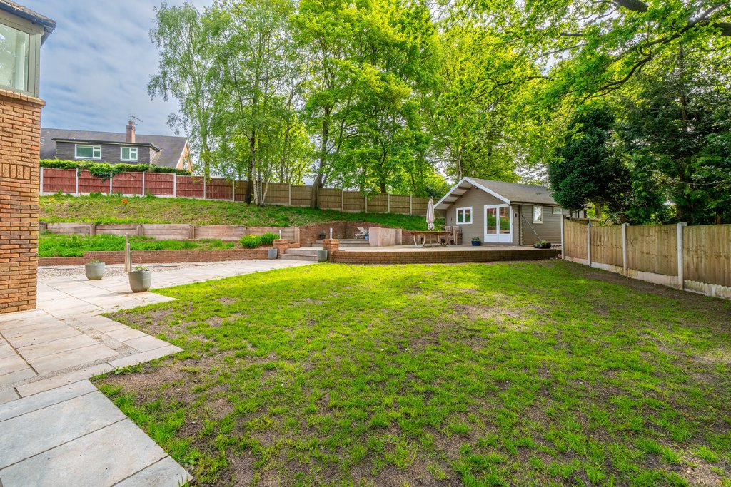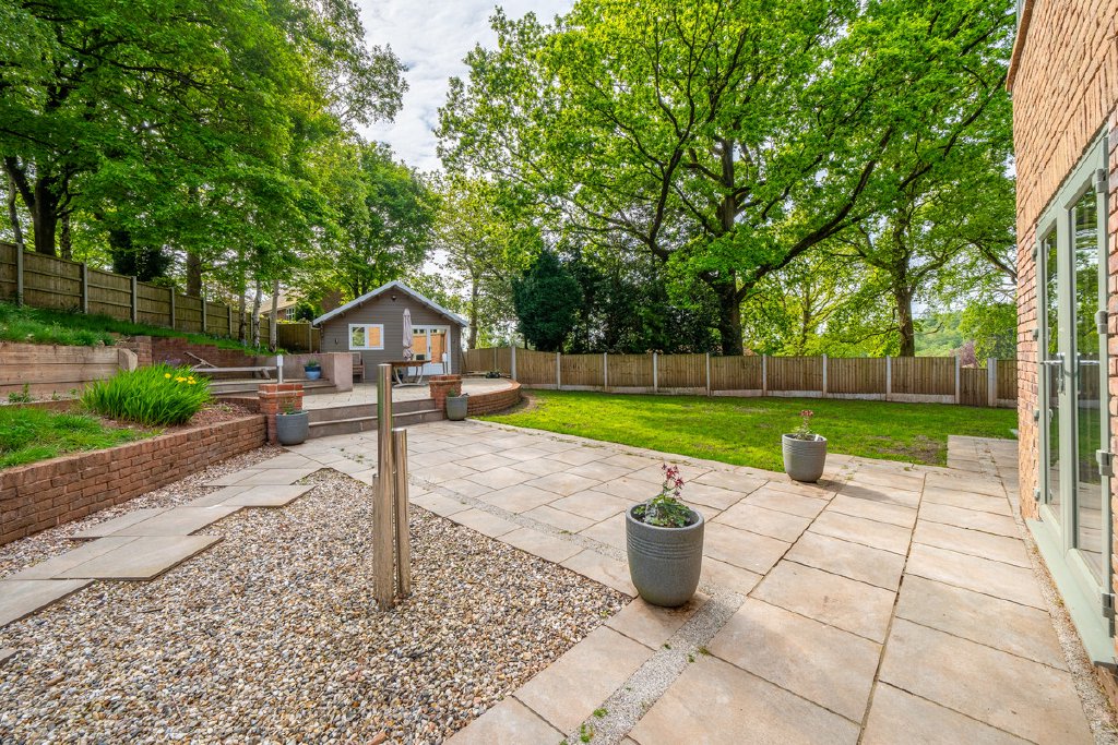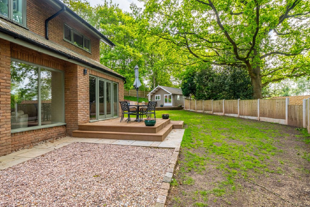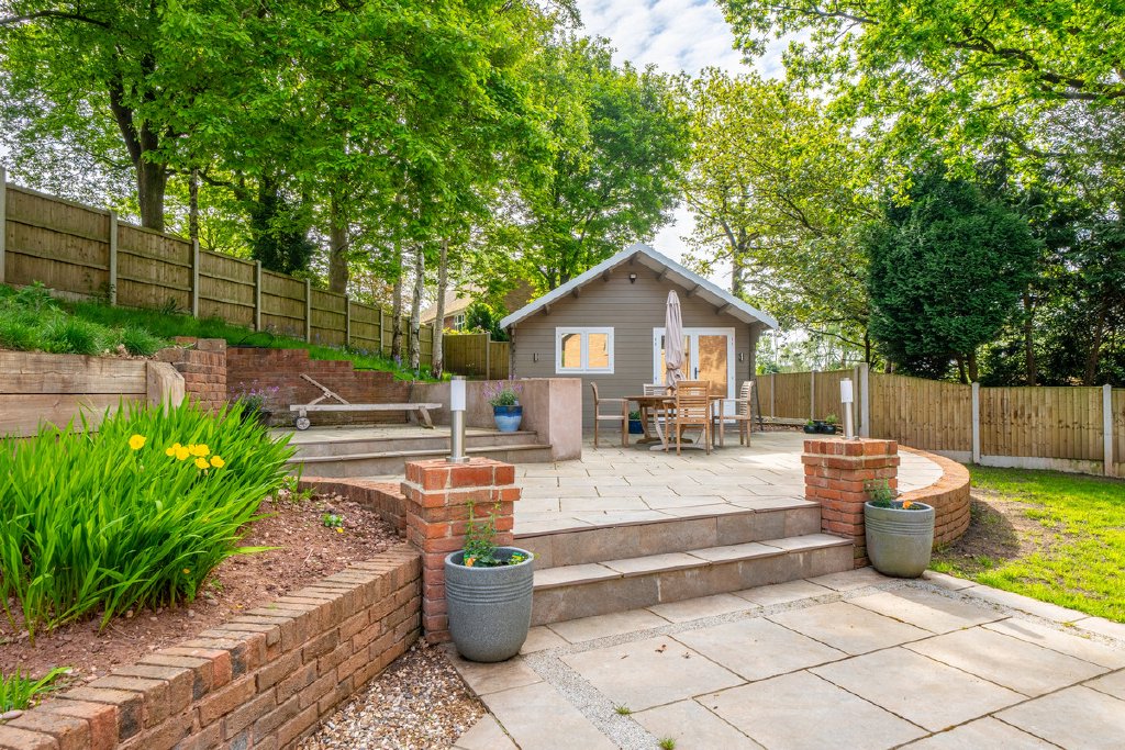- Large private garden with patio areas and detached garden room