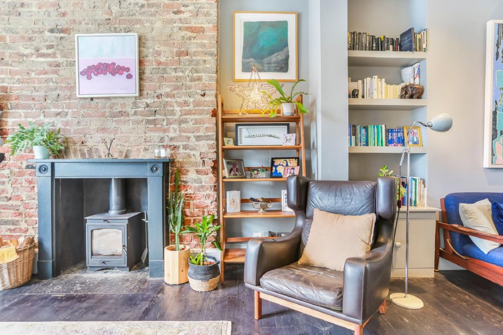 Natural light from a tall sash window beautifully lights a distinguished main reception room where a magnificent period fireplaces instantly reminds you of the charm and character of this family home, while its exposed brick chimney breast continues the integrity of the original design. French doors open onto a Juliet balcony offering views of the peaceful and private courtyard garden.