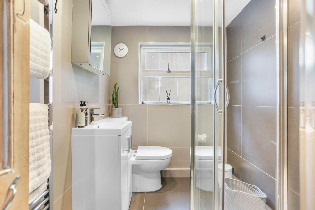 The graceful aesthetics of this family home continue in each of the two double bedrooms on the first floor. Natural light from tall sash windows tumbles into spacious double bedrooms whose generous proportions create an instant wow factor.
