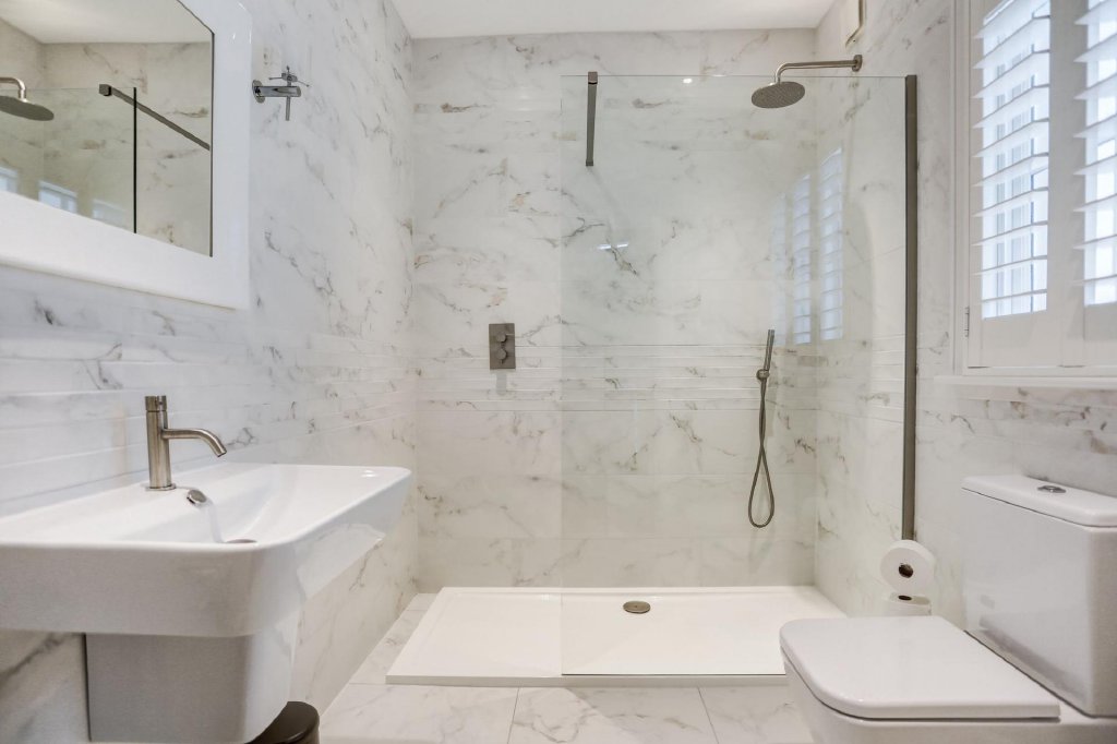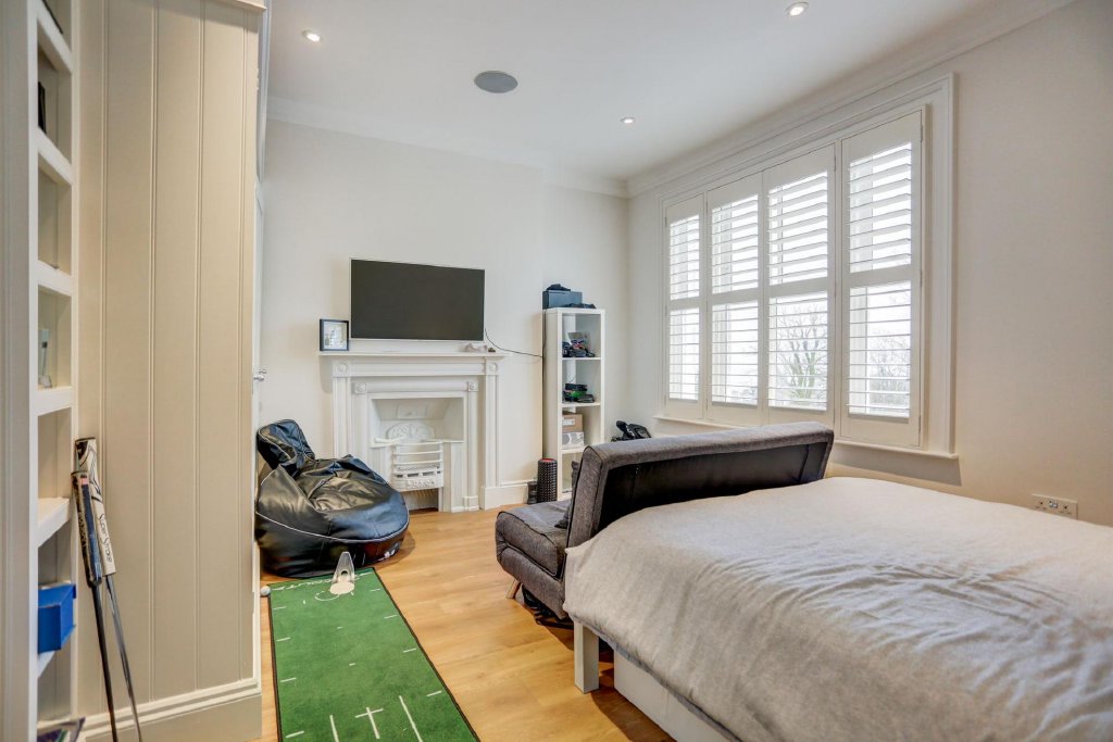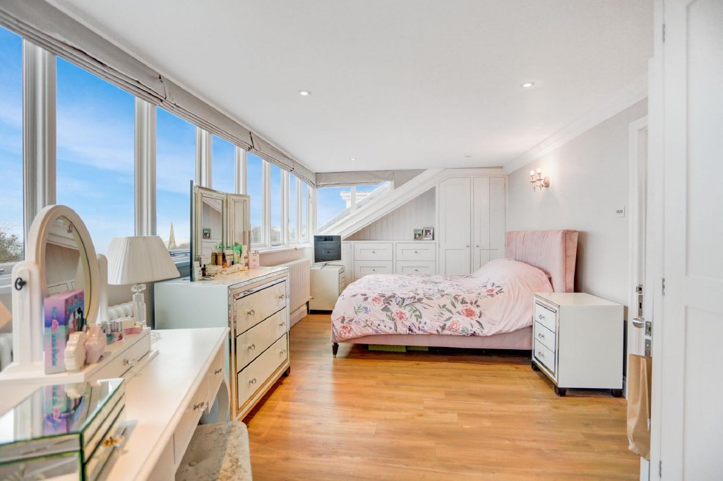 The majestic master bedroom occupies the whole third floor. The idyllic nature of this room is accentuated by long, panelled dormer windows that span across the front of the room, offering stunning South facing views across the communal gardens, down to the sea. This room has the best of both worlds; the windows create a sense of openness, that immerses you in the surroundings of Clifton Terrace & Gardens, whilst the eaves at either side create a cosier setting. The master bedroom also benefits from an ensuite with a walk-in shower and free-standing bath, as well as a dressing room with a generous array of built in wardrobes.