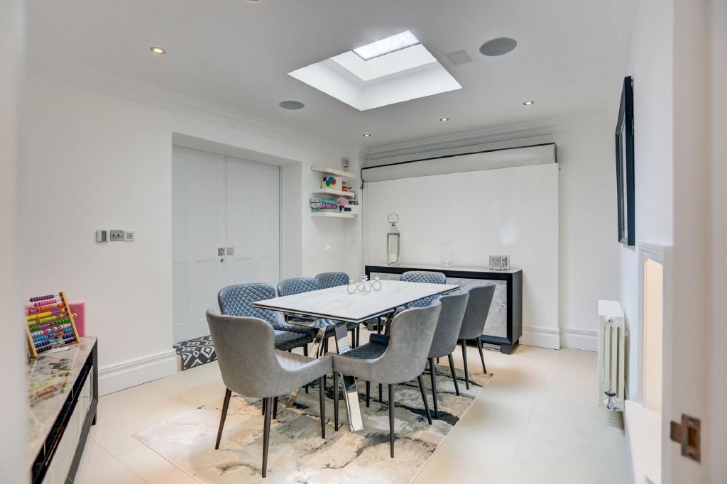 Upon arrival at this remarkable period, end of terrace house, the features of the first reception room immediately catch your eye; the parquet wood flooring, as well as the feature fireplace make a great first impression. As you continue through the house in to the kitchen, the south facing aspect provides an abundance of light in to this generously sized room. The layout of the kitchen promotes efficiency and accessibility through its elegant and clean design. The raised dining area, games room and utility room run adjacent to the kitchen, making the ground floor an innovative and multifunctional space, with large windows, providing natural light throughout.