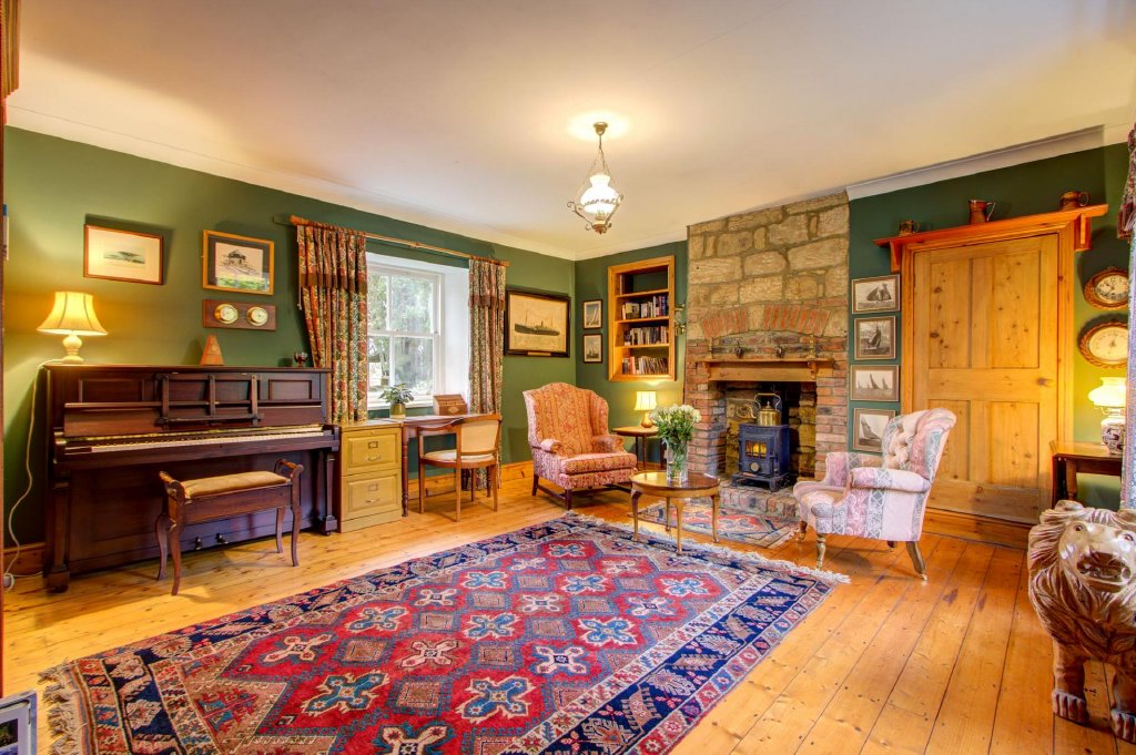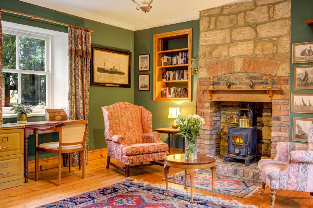 Step inside, through the welcoming vestibule, where we discover three spacious reception rooms, each full of charm and personality. Two feature magnificent inglenook fireplaces — the perfect spot to curl up beside the fire on a winter’s evening.
