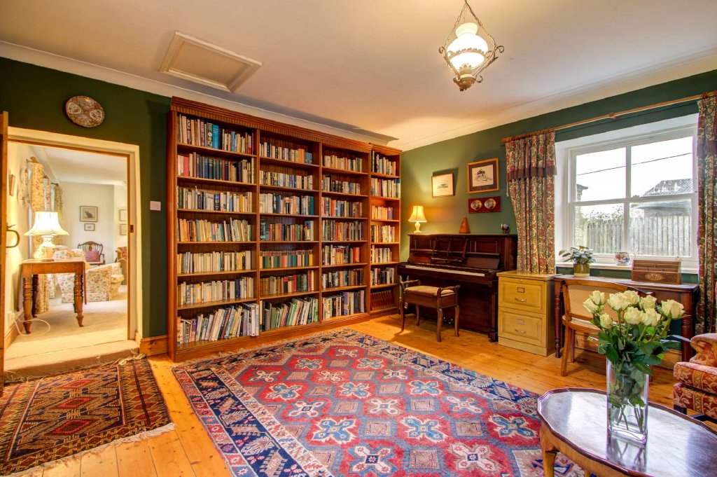 The living room opens directly into the garden, inviting you to step outside into this expansive, established and private outdoor space. In the sitting room, elegant French doors open directly onto the terrace overlooking the gardens beyond, ideal for warm summer entertaining. With wooden floors and double-aspect windows that flood the room with natural light, the spacious study or snug is perfect for those working from home. It’s also a tranquil place to relax and read a book by the wood-burning stove.