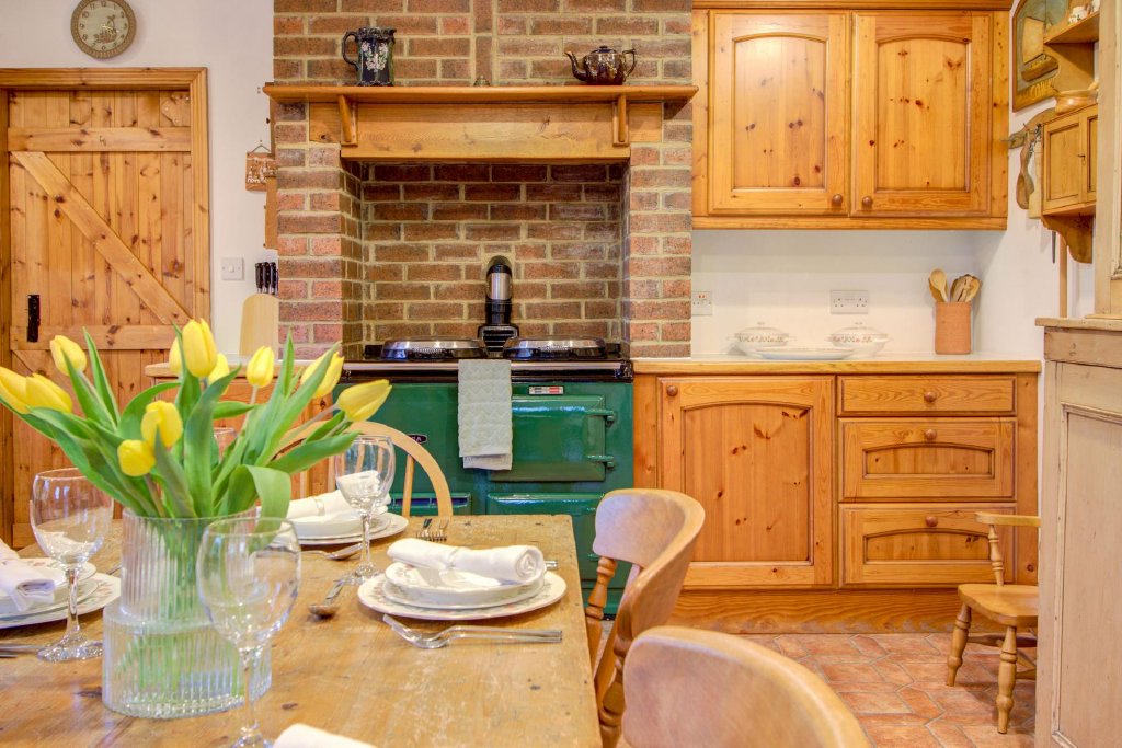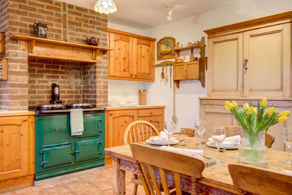 At the heart of the home lies the kitchen and breakfast room, spacious, welcoming, and full of country character. The traditional AGA fills the room with warmth, making it the perfect setting for family gatherings and leisurely meals together. A stable door leads out to the sheltered terrace, ideal for morning coffee or al fresco dining in the warmer months.
