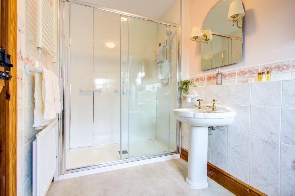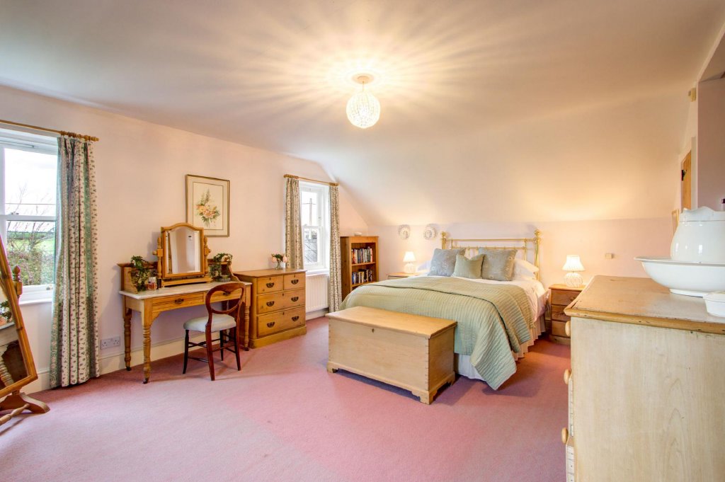 The generously sized principal bedroom features fitted wardrobes and an en-suite shower room. This lovely room is light and bright with wonderful dual-aspect views over the gardens and fields. Three further delightful bedrooms, each with charming picture windows, offer comfort and calm and fabulous views over the gardens. A family bathroom completes the upstairs accommodation.
