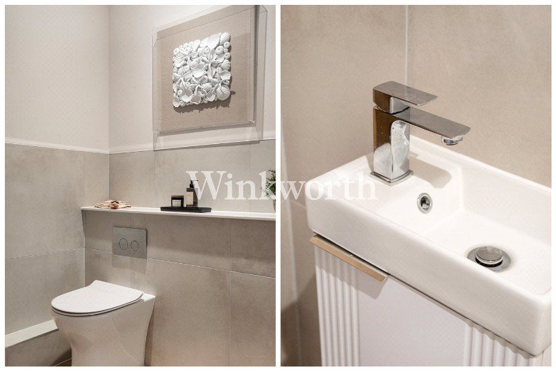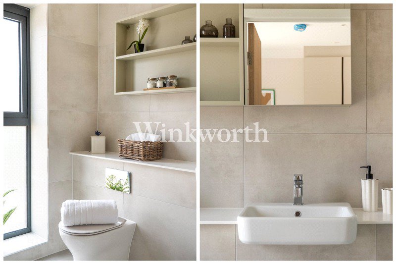 This beautifully designed three storey, four bedroom home spans 1,380 square feet and offers two bathrooms, a private terrace, garden and garage. Priced at £649 per square foot, it offers exceptional value for a house of this calibre.