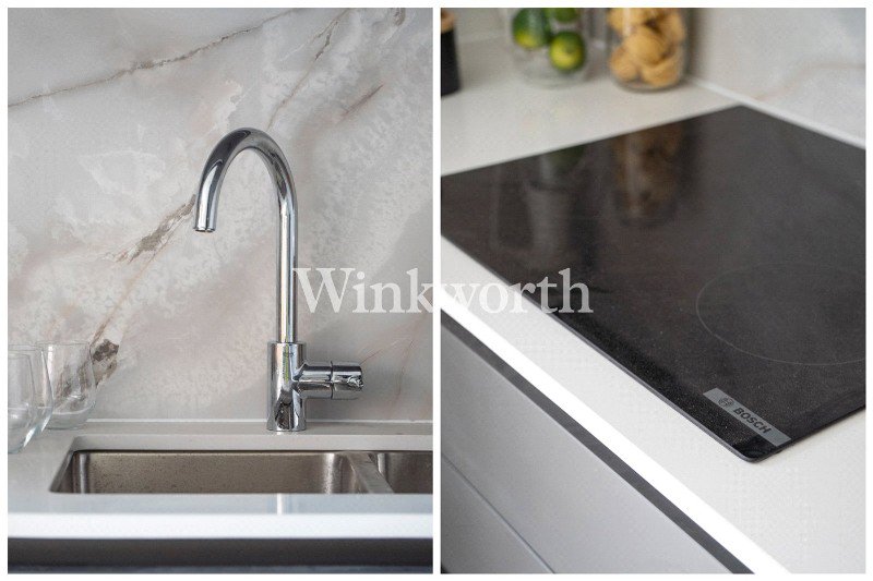 Inside, the layout has been planned with modern living in mind. The open plan kitchen and dining room sets the tone, finished with wood-effect ceramic flooring, a calm neutral palette and high quality, energy-efficient appliances. Full height bi-fold doors open out to the garden, creating a seamless flow between indoors and out.