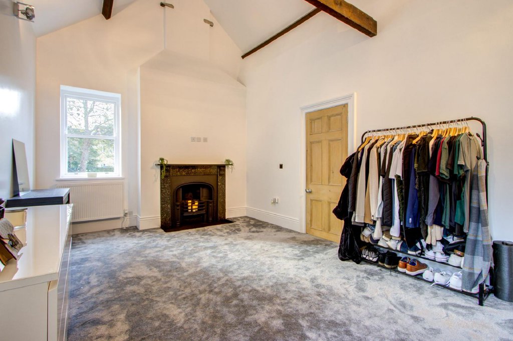 Upstairs, the sense of space and luxury continues, with beautifully lit stairs and elegant wall panelling leading the way. The first floor hosts four generous double bedrooms, two of which feature their own dressing rooms and luxurious en-suite shower rooms. A third bedroom, currently used as a dressing room, showcases a striking vaulted ceiling with exposed beams and a charming feature fireplace, adding real character and warmth. All fireplaces upstairs are in working order, should you wish to make the most of this wonderful feature in cooler months.