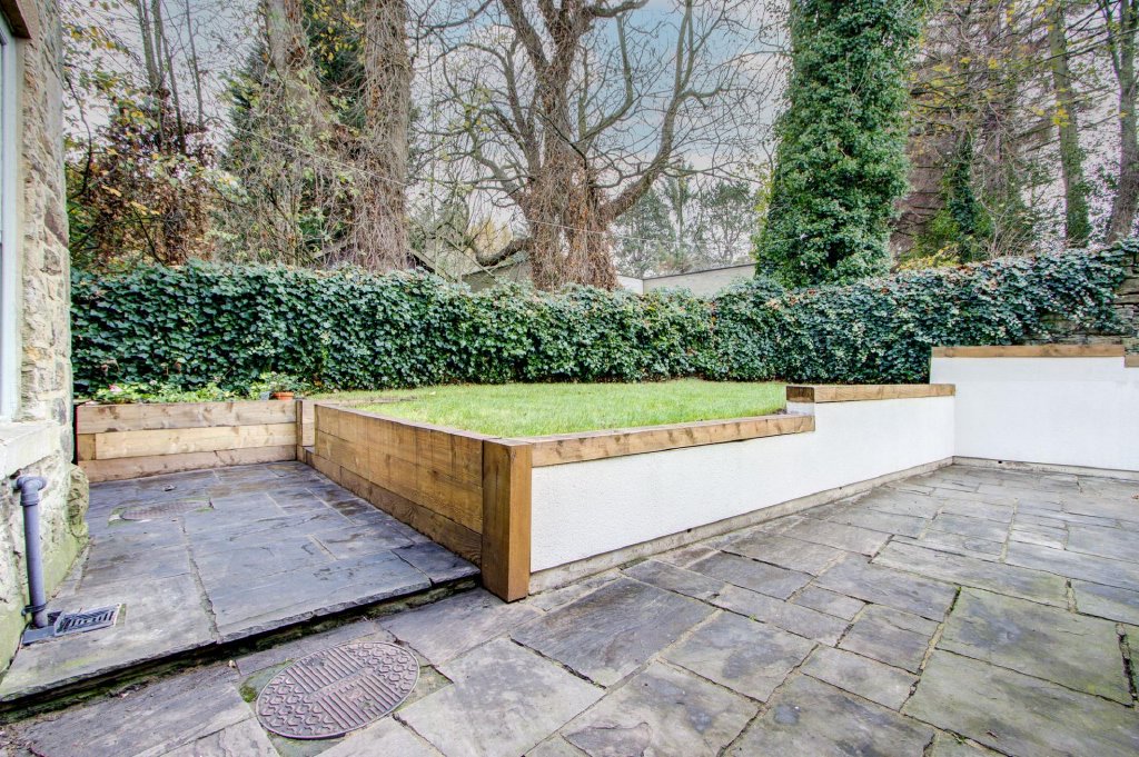 The outdoor spaces are every bit as impressive as the interior. The front garden offers a peaceful and picturesque setting framed by mature trees and shrubs, with a meandering path that reveals charming hidden corners to pause and enjoy the surroundings.