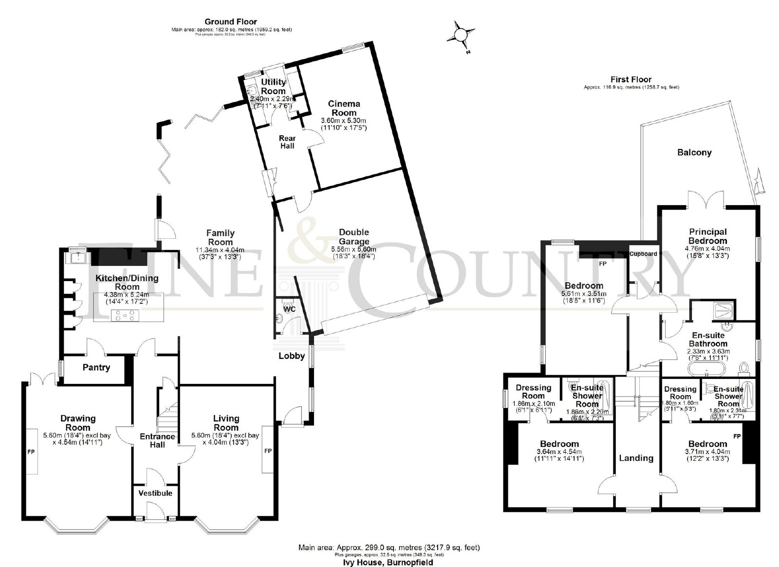 Vestibule | Entrance Hall | Living Room | Drawing Room | Kitchen/Dining/Family Room | Pantry | Utility Room | Cinema Room | WC | Double Garage