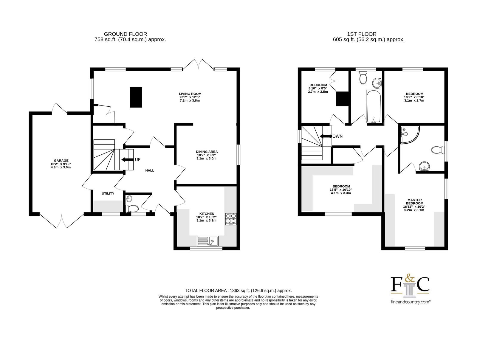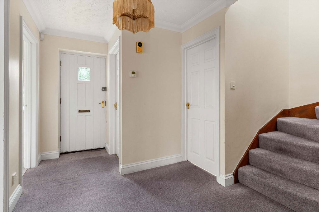 Into the hallway through a wooden front door and staircase leading to the first floor. There is a downstairs cloakroom and separate utility room which leads you into the garage without the need of going outside. There is a good-sized kitchen and L shaped living / dining room with brick feature fireplace and french doors leading out to the garden. On the first floor you will find a principal bedroom with ensuite shower room and built in wardrobes, three further bedrooms and a family bathroom.