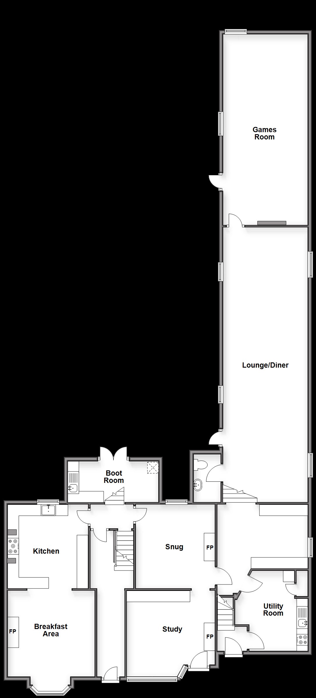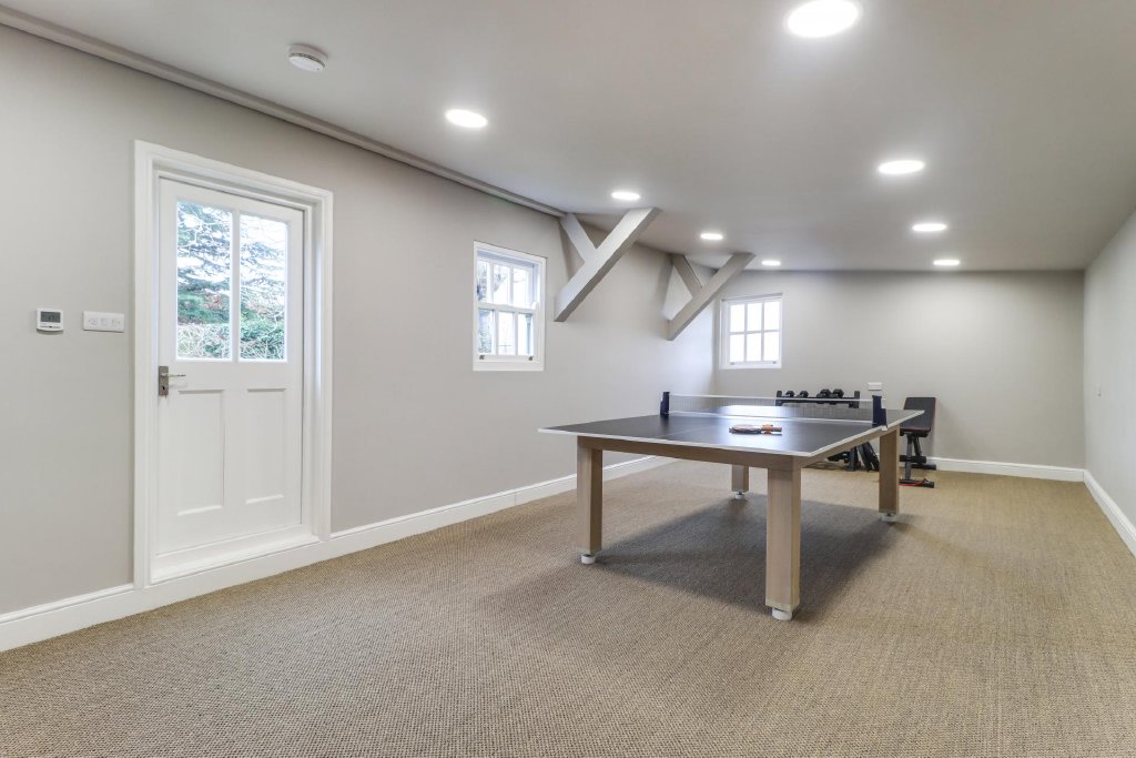 A separate front door opens to a secondary staircase that leads to a large landing on the first floor as well as a to a utility room with the original vast barn doors to the street that can also be accessed from the snug. It includes units housing an induction hob, oven and dishwasher as well as stand-alone laundry facilities and a control systems cupboard. This side of the house also features a library with shelving and steps down to the superb barn conversion with underfloor heating, a cloakroom and a wonderful triple aspect, lounge/diner with a high vaulted ceiling and crossbeams that is nearly 40ft long. It leads to the impressive games room that is large enough for a full size snooker table while still leaving space to incorporate a bar and seating or a well-equipped gym.