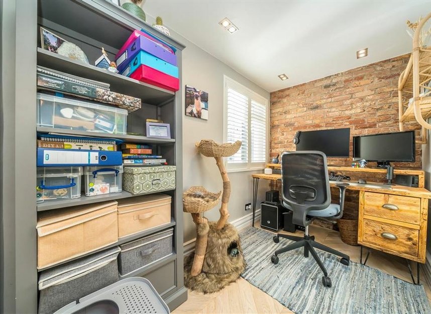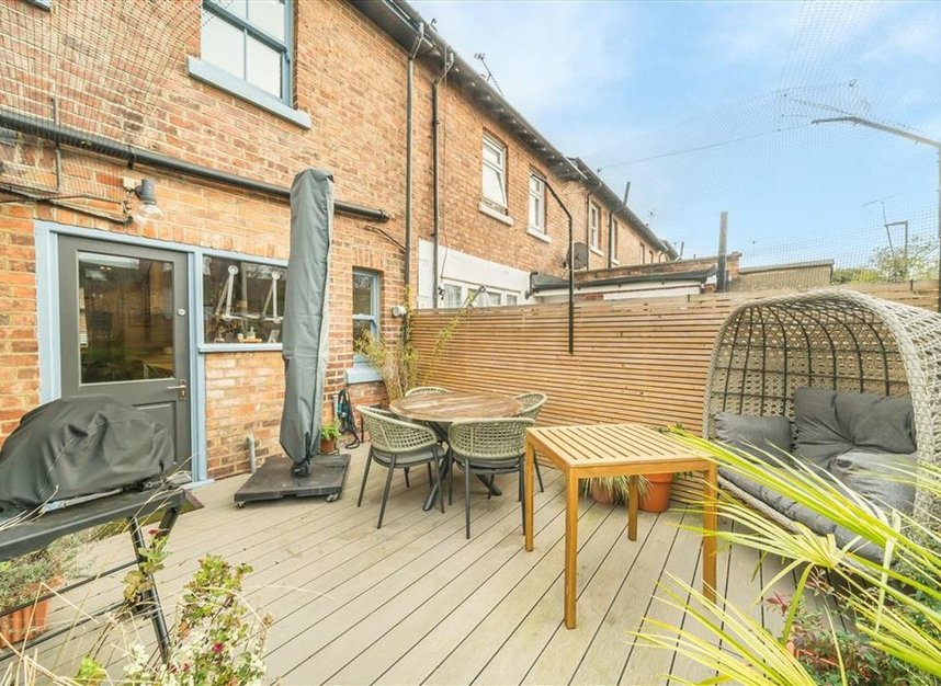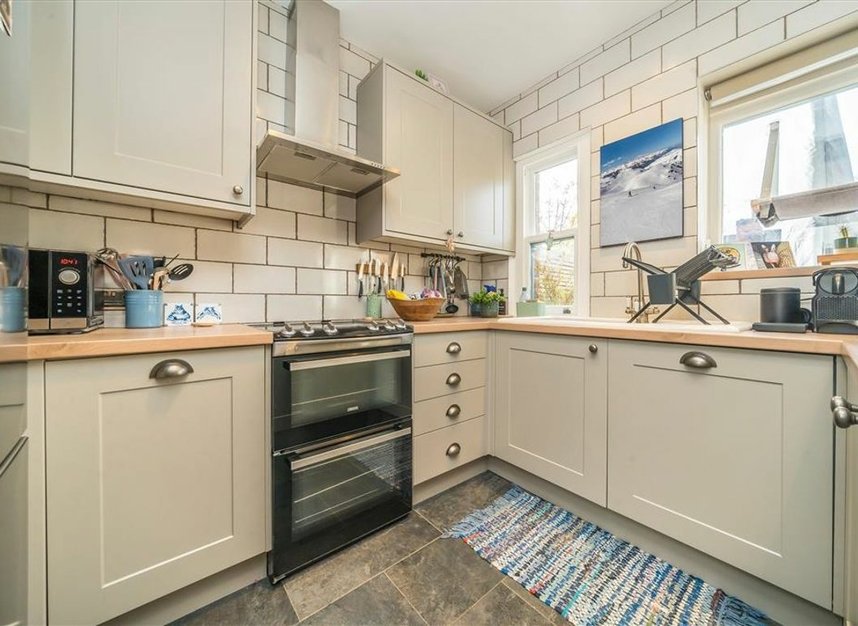 A freehold ''railway cottage'' renovated throughout and offering a spacious, open plan living area with well-equipped kitchen, office, two double bedrooms, family bathroom with separate shower, ample storage and access to a private courtyard and communal gardens.